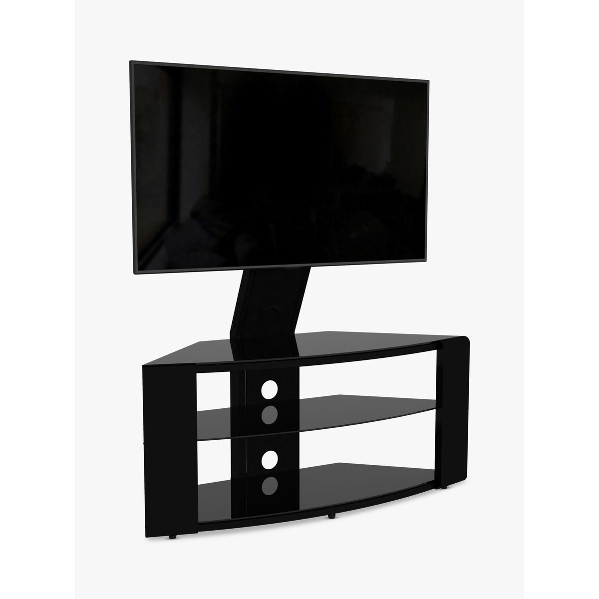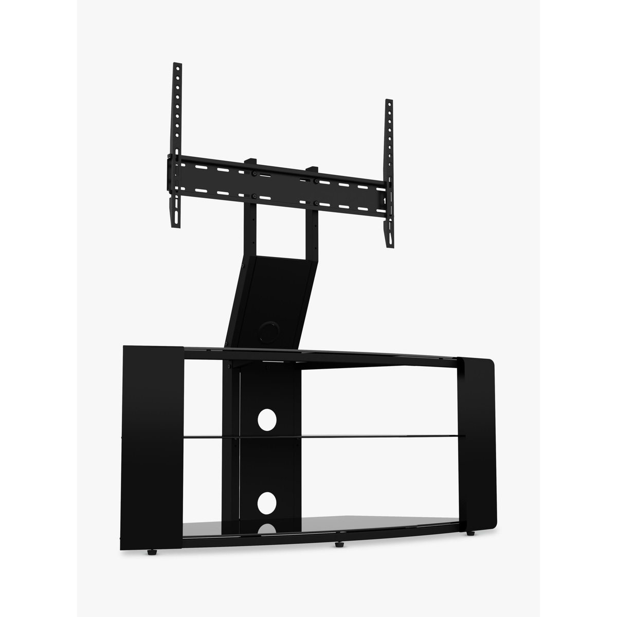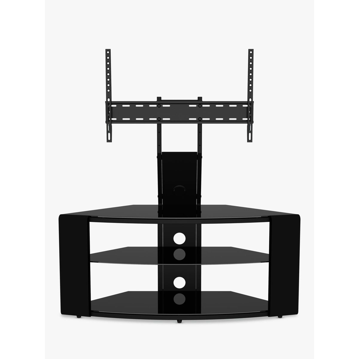 The AVF Como TV stand completes any space with its unique design and modern feel. Its angled back makes it ideal for corner positioning, and its sleek design helps to keep unsightly cables out of the way. Features an open-back design and is perfect for corners. This stand has been safety glass tested to British Standard 6202a. Cable management to route TV and accessory cables. Easy to assemble. 600 x 400 VESA Mount compliant. Please note: Any maximum TV size quoted is a recommendation only and the exact dimensions of the TV's pedestal/feet should be checked to ensure it fits prior to purchase.