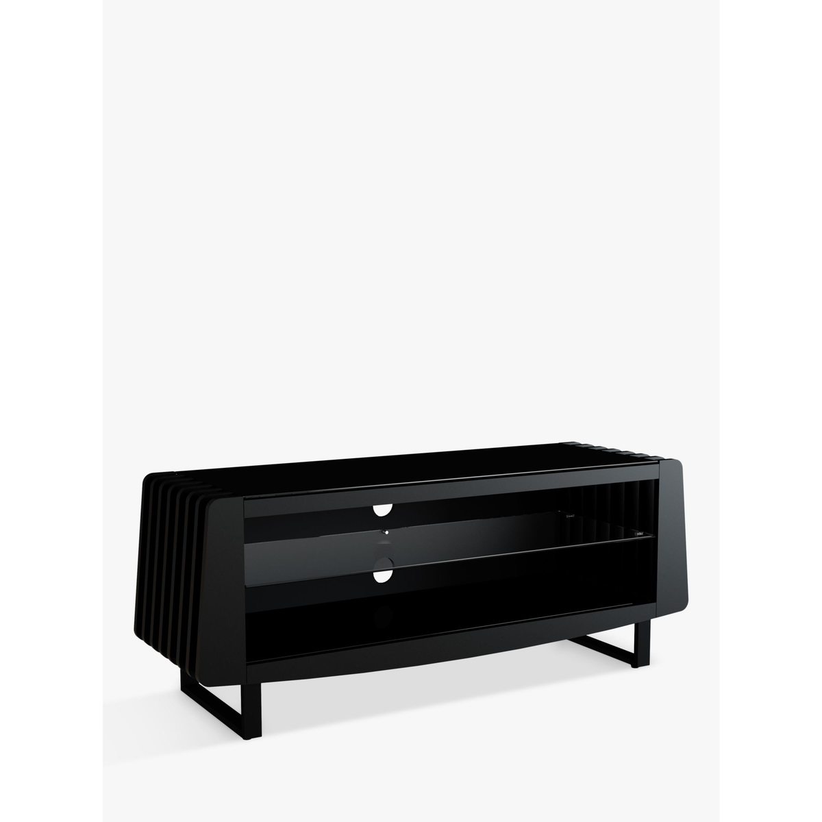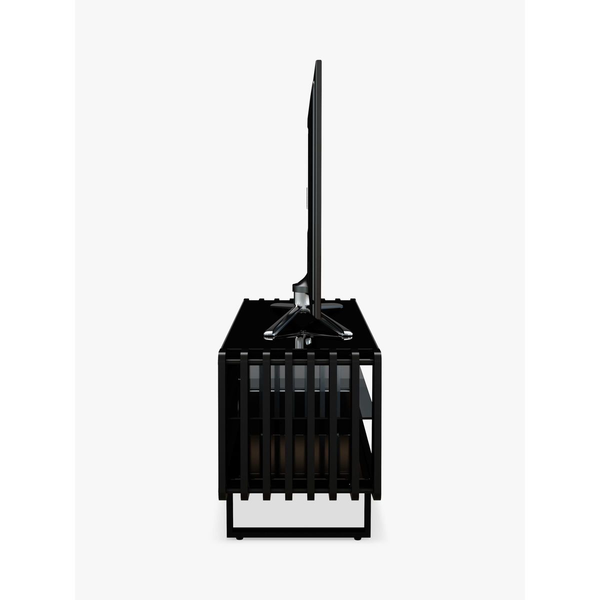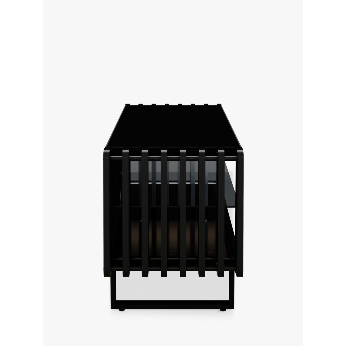 Cove's vertically slatted sides make it a stand out piece in any room. This open fronted design combines wood, glass and sturdy metal legs, offering ample storage for your AV equipment whilst the rear panel neatly organises cables out of sight. Open fronted for easy access to AV equipment Tempered safety glass top surface and internal shelving Rear cable management panel hides wiring neatly out of sight Any maximum TV size quoted is a recommendation only and the exact dimensions of the TV's pedestal/feet should be checked to ensure it fits prior to purchase.