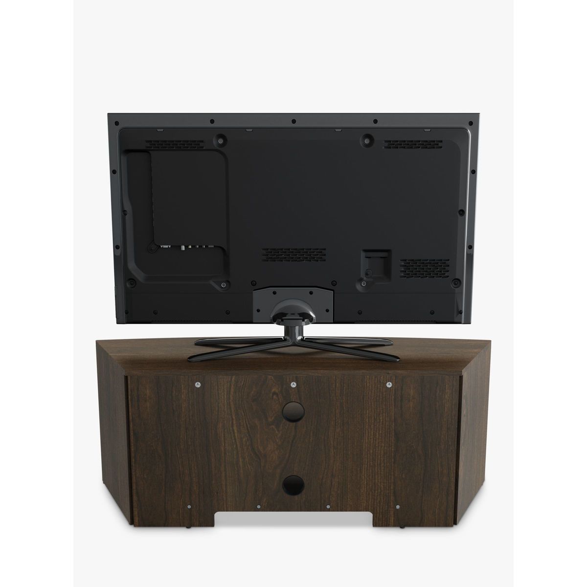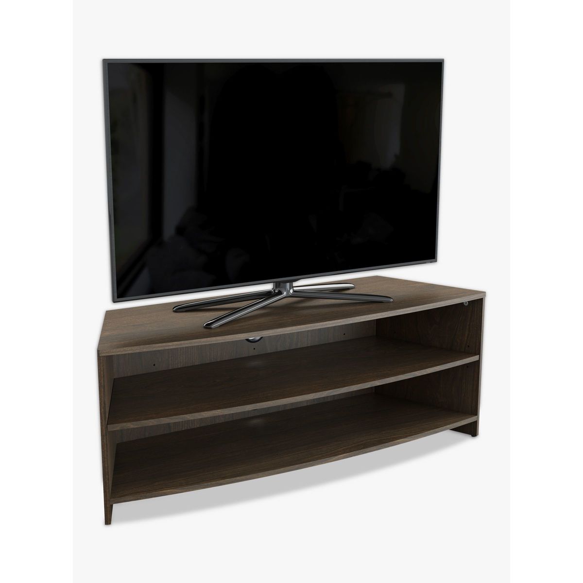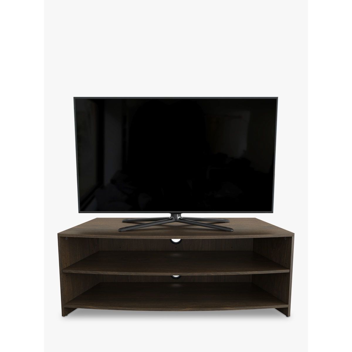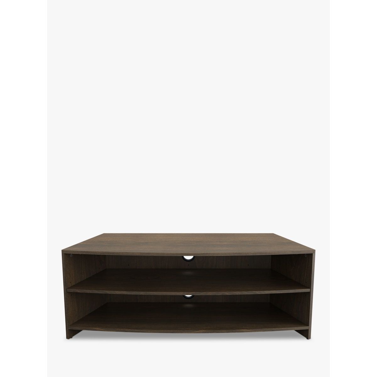 AVF's Dartmouth TV stand offers a sleek, uncomplicated design with a soft curved front and shaped back which makes it ideal for placing in corners or along flat walls. It's designed to support TVs up to 60” (and 40kg), with two lower shelves giving ample room for sound bars and all your audio-visual accessories. The internal shelf is adjustable, so it can accommodate devices of various sizes, and supports up to 10kg, with the lower fixed shelf holding 15kg. An enclosed rear panel with two cable management oulets keep cables neatly organised and out of sight. Any maximum TV size quoted is a recommendation only and the exact dimensions of the TV's pedestal/feet should be checked to ensure it fits prior to purchase.