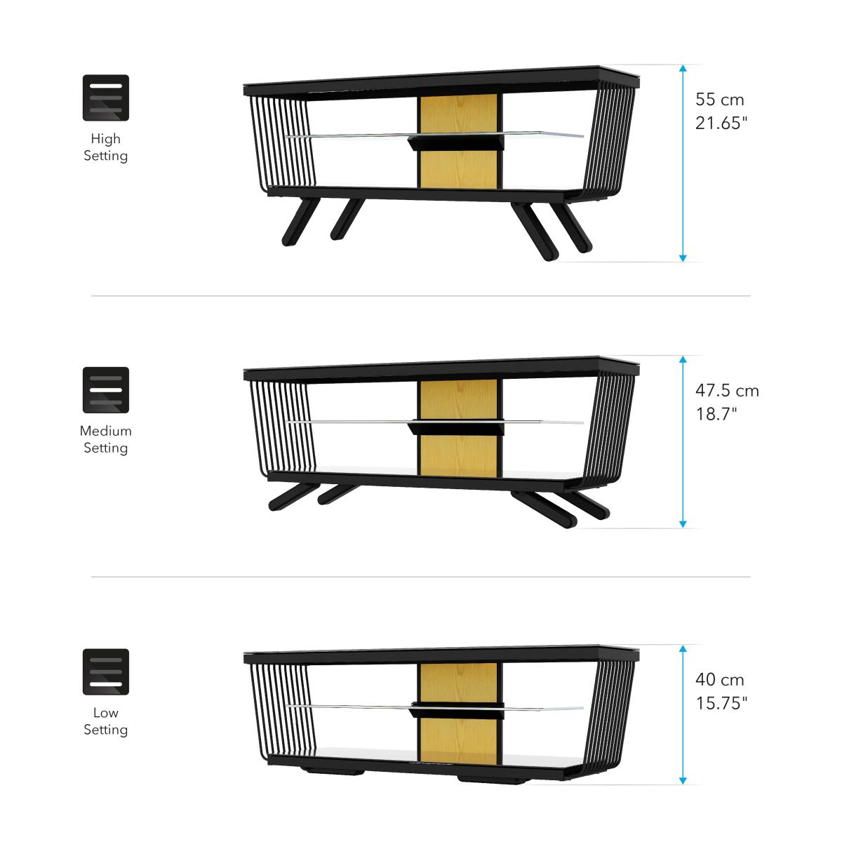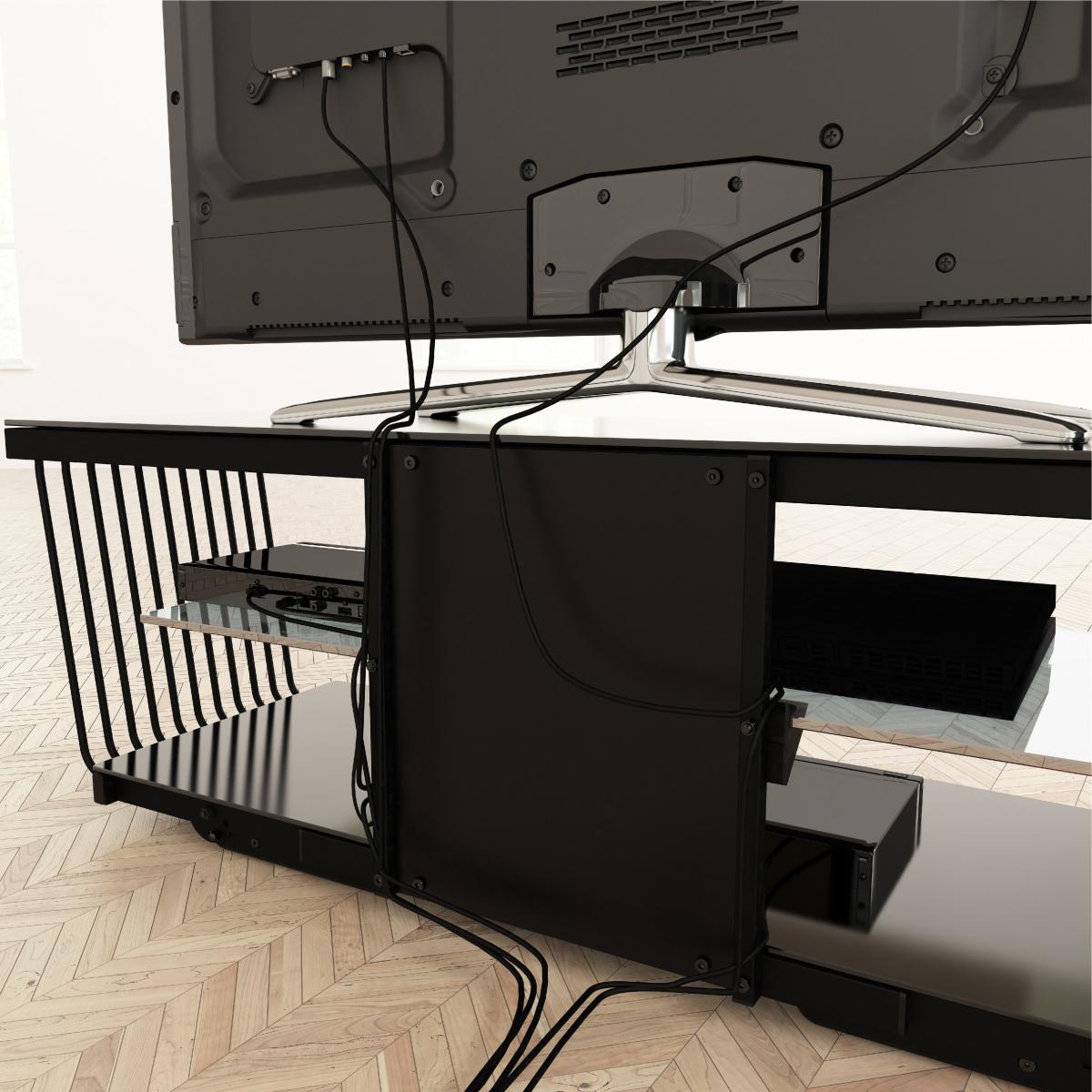 With the ability to customise the colour way of this TV stand, you can take control of the design of your lounge. Adjust the stand to hold your TV at your desired height too! You can even keep your cables tidied away with the cable management panel. If your surface is slightly uneven, you an even adjust the feet.
