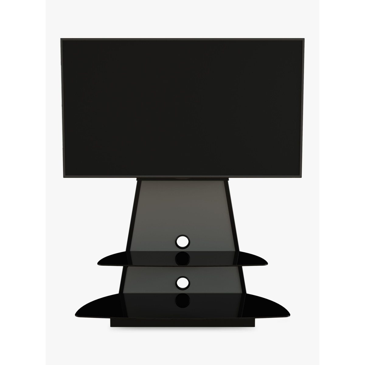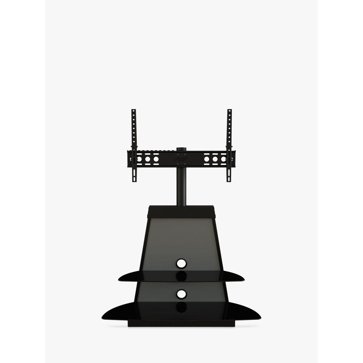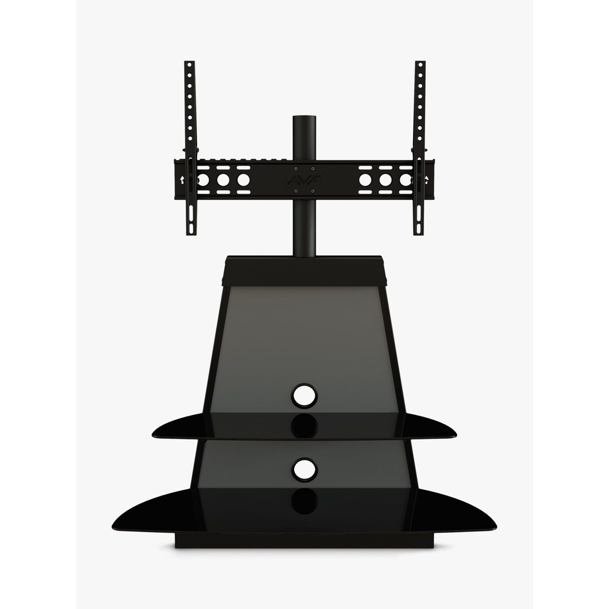AVF’s elegant Shore stand is a smart space-saver, perfect for placing in corners, or flat against a wall. Elevate your TV on the mount and store all your AV equipment on the two toughened glass shelves. Sleek and versatile, this easy-to-assemble unit is the ideal home for your entertainment set-up. Sturdy build. This stand-and-mount combi gives the support your TV and AV equipment needs. The mount can take a maximum weight of 45kg, and with shelf depth over 50cm, there's plenty of space to store your set top boxes, disc players and consoles. Versatile. The mount (VESA sizes: 100 x 100mm to 600 x 400mm) lets you adjust the height on the column, so you can set the TV at just the right level. You can store all your AV equipment on the two 'floating' shelves, and two cable management vents keep your set-up free of untidy wires. Any maximum TV size quoted is a recommendation only and the exact dimensions of the TV's pedestal/feet should be checked to ensure it fits prior to purchase.