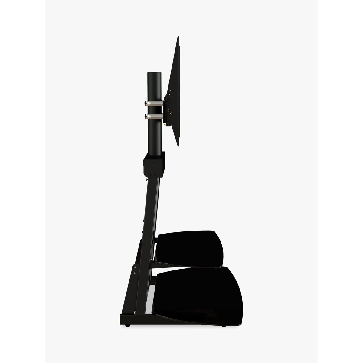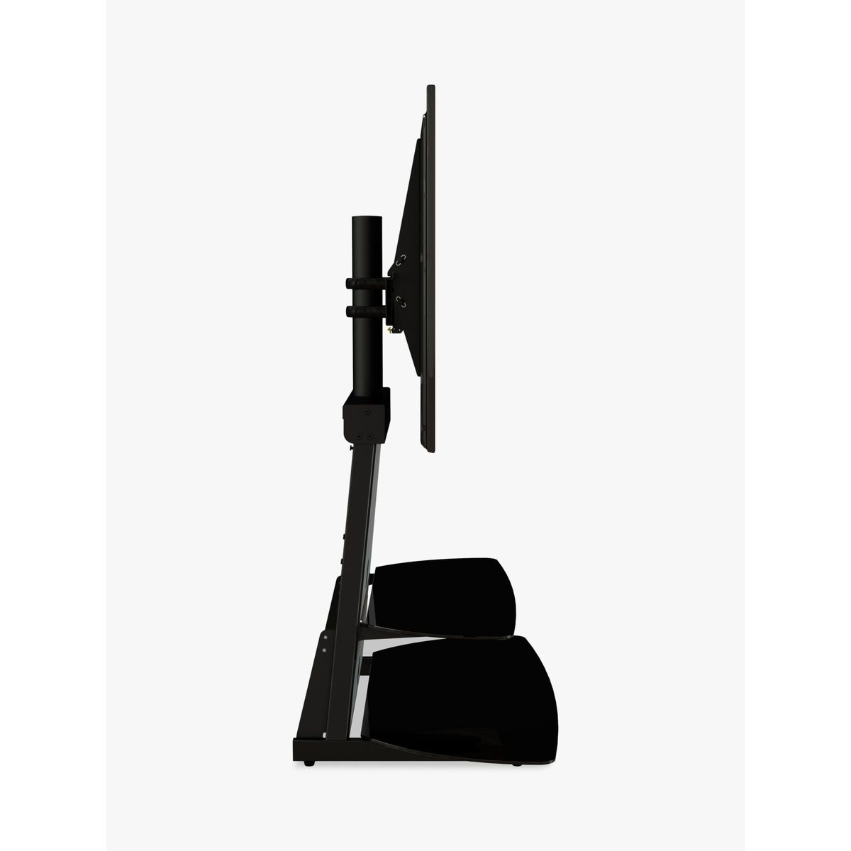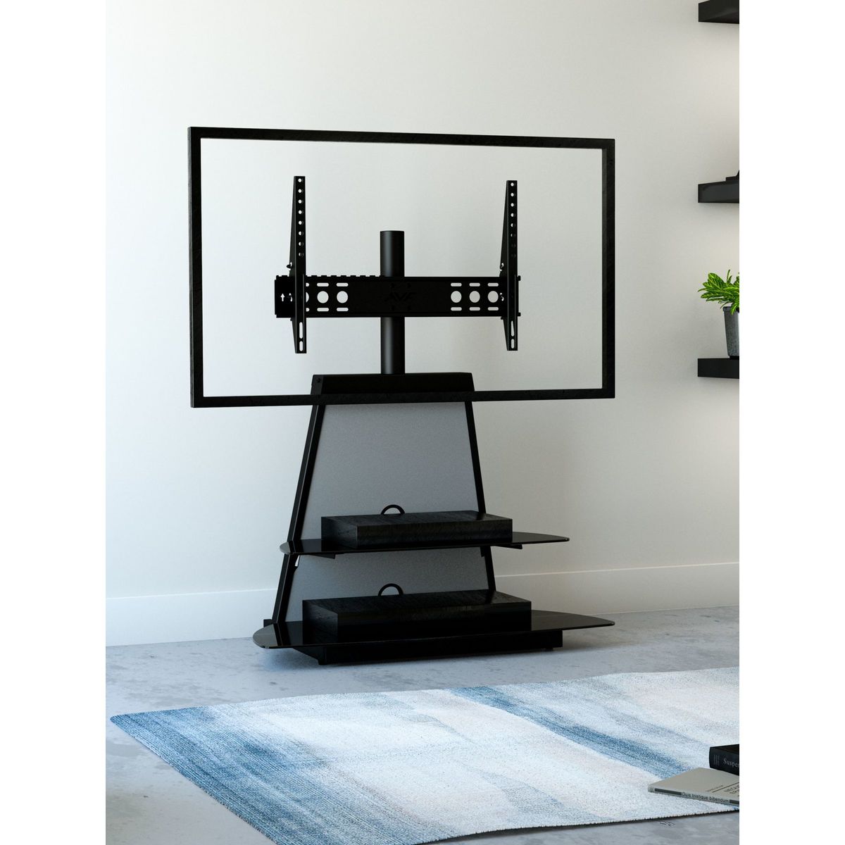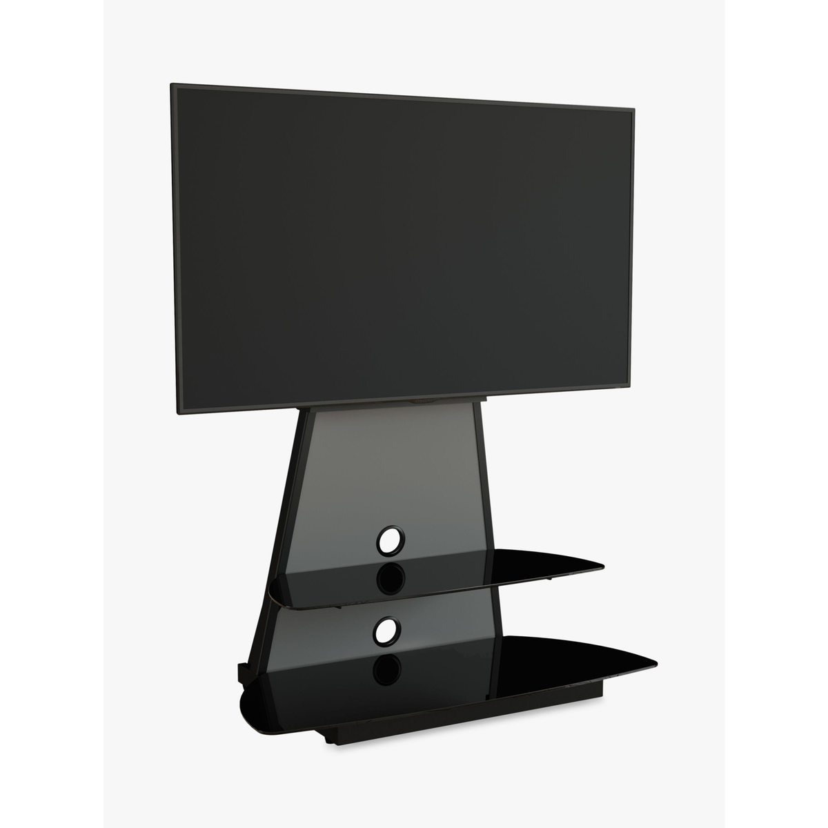 AVF’s elegant Shore stand is a smart space-saver, perfect for placing in corners, or flat against a wall. Elevate your TV on the mount and store all your AV equipment on the two toughened glass shelves. Sleek and versatile, this easy-to-assemble unit is the ideal home for your entertainment set-up. Sturdy build. This stand-and-mount combi gives the support your TV and AV equipment needs. The mount can take a maximum weight of 45kg, and with shelf depth over 50cm, there's plenty of space to store your set top boxes, disc players and consoles. Versatile. The mount (VESA sizes: 100 x 100mm to 600 x 400mm) lets you adjust the height on the column, so you can set the TV at just the right level. You can store all your AV equipment on the two 'floating' shelves, and two cable management vents keep your set-up free of untidy wires. Any maximum TV size quoted is a recommendation only and the exact dimensions of the TV's pedestal/feet should be checked to ensure it fits prior to purchase.
