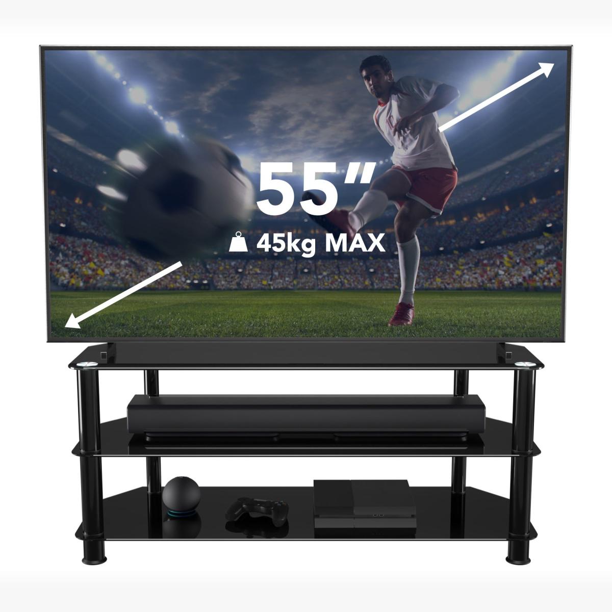 Your TV can be placed on this TV stand with all your TV boxes, consoles and essentials for the ultimate lounge experience. You can either place the stand in a corner or against a flat wall, what ever works best for you! The lower shelves provide you with some extra storage space too. Worried about assembly? There's no need to as assembly is easy!.
