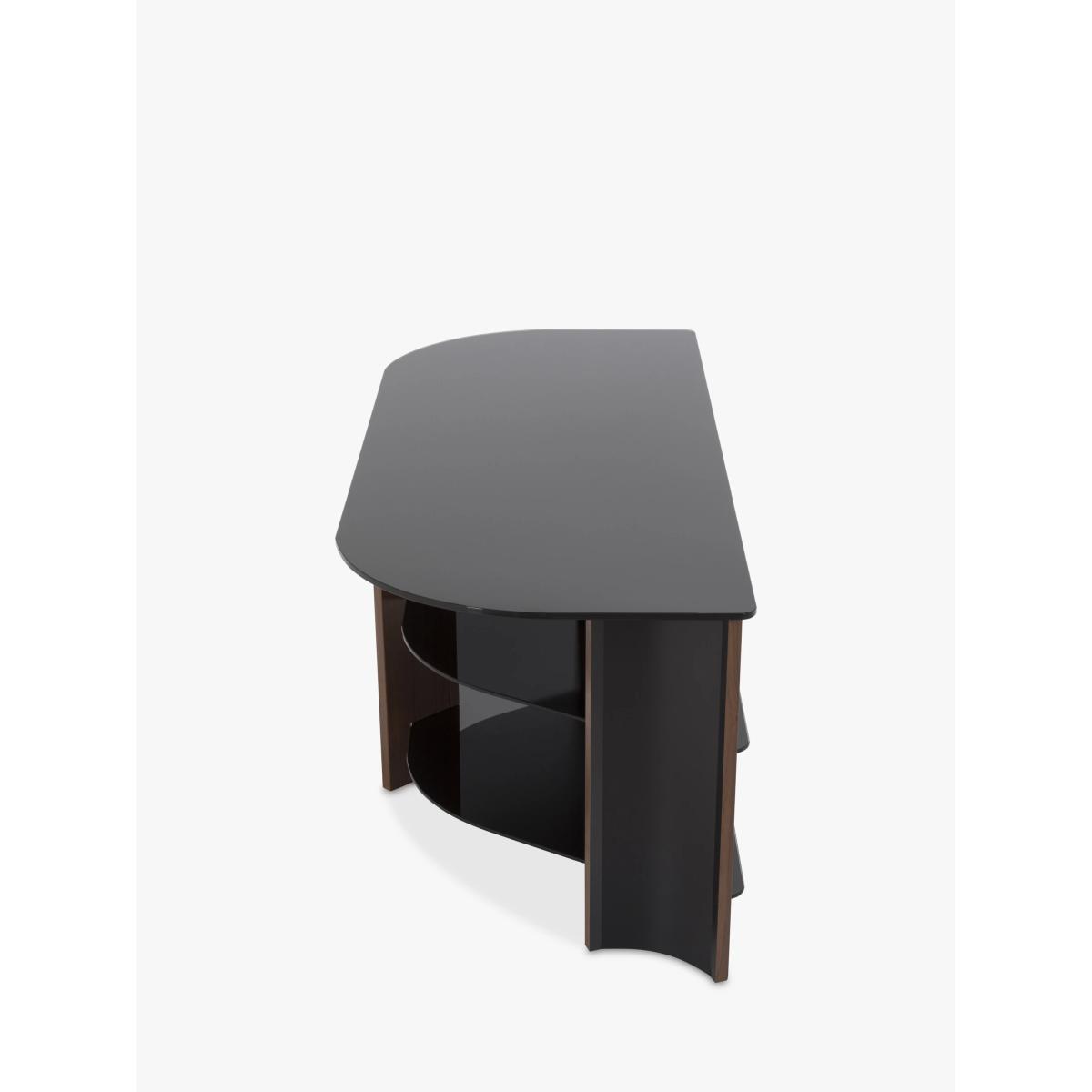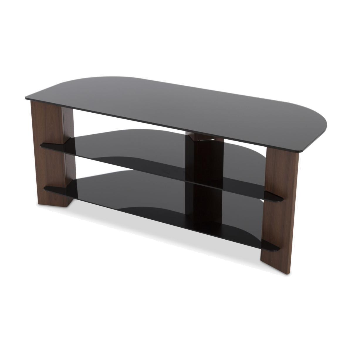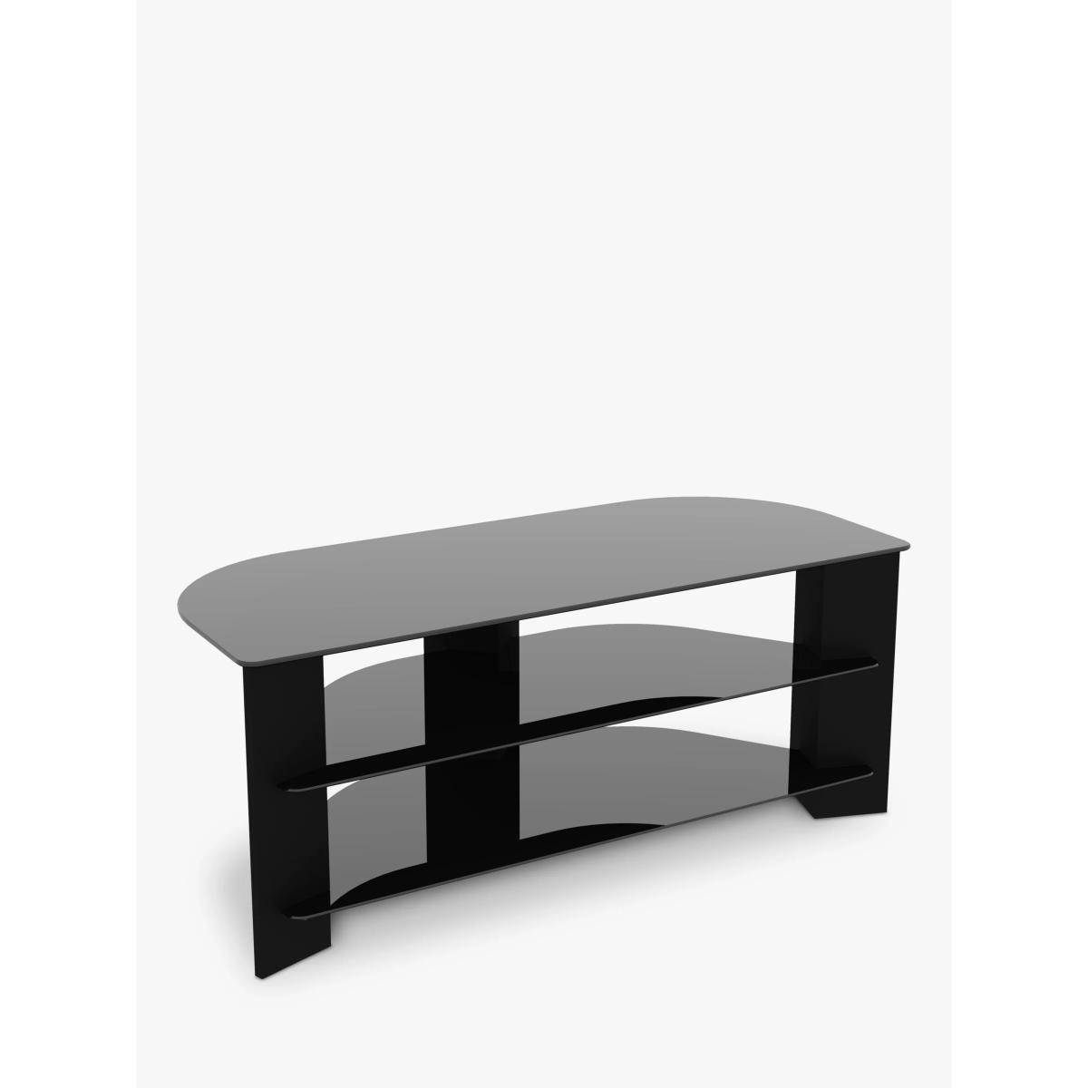 With three beautiful glass shelves, the Varano 1100 gives you generous and easy access storage for all your home entertainment equipment. Its angled legs mean it fits just as well in a corner as flat against a wall. Two lower shelves ensure a large capacity for your receivers, media players and games consoles. Suitable for TVs up to 55", the top shelf supports weights up to 40kg, and its two lower shelves 10kg each. Fits in a corner or flat against a wall Black tempered safety glass top surface and lower shelving Cable management features keep wires neatly out of sight Easy to assemble Any maximum TV size quoted is a recommendation only and the exact dimensions of the TV's pedestal/feet should be checked to ensure it fits prior to purchase.