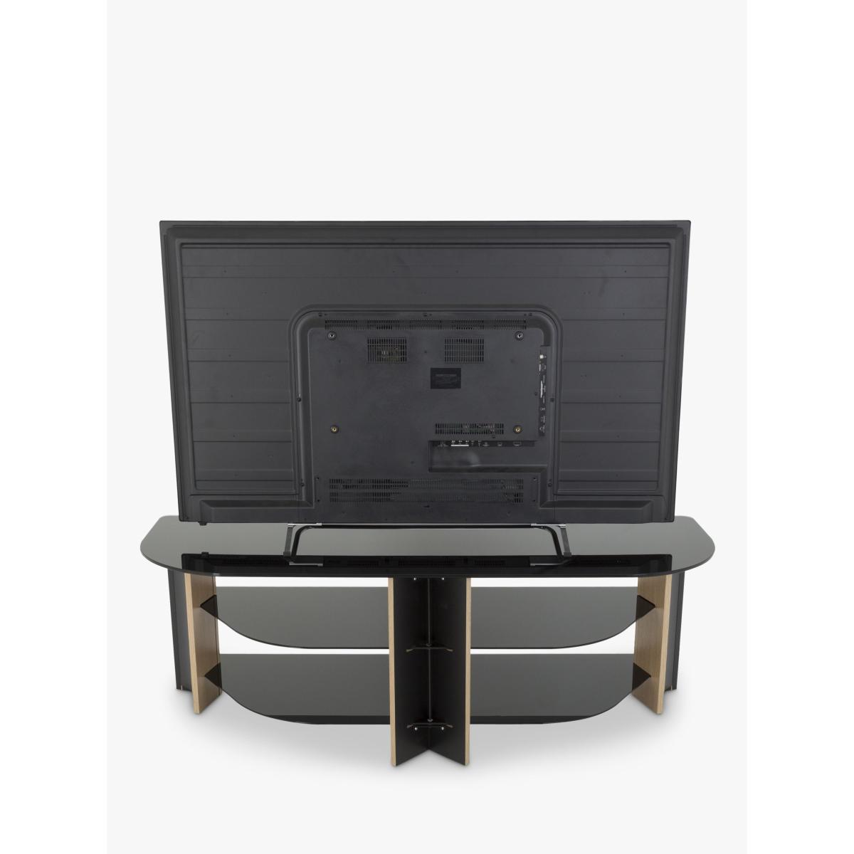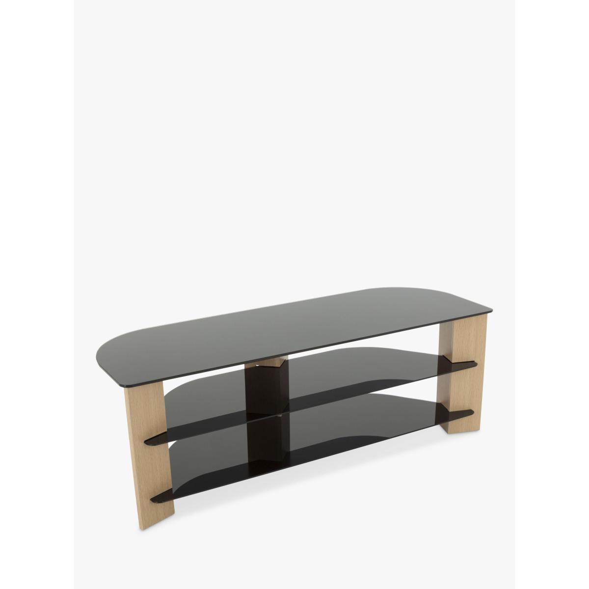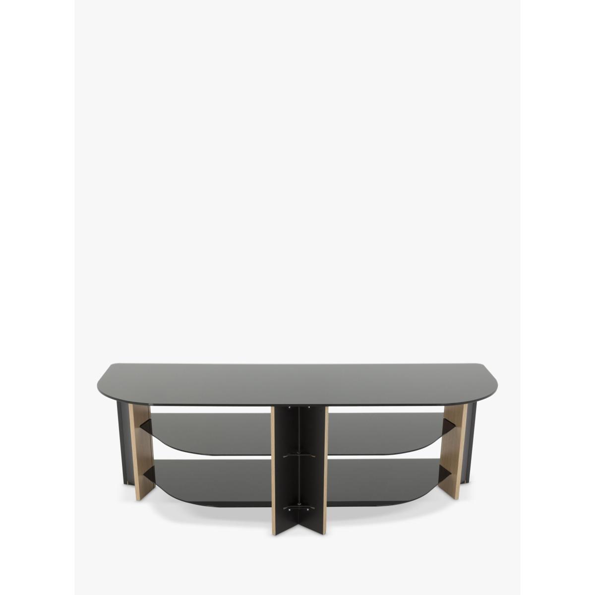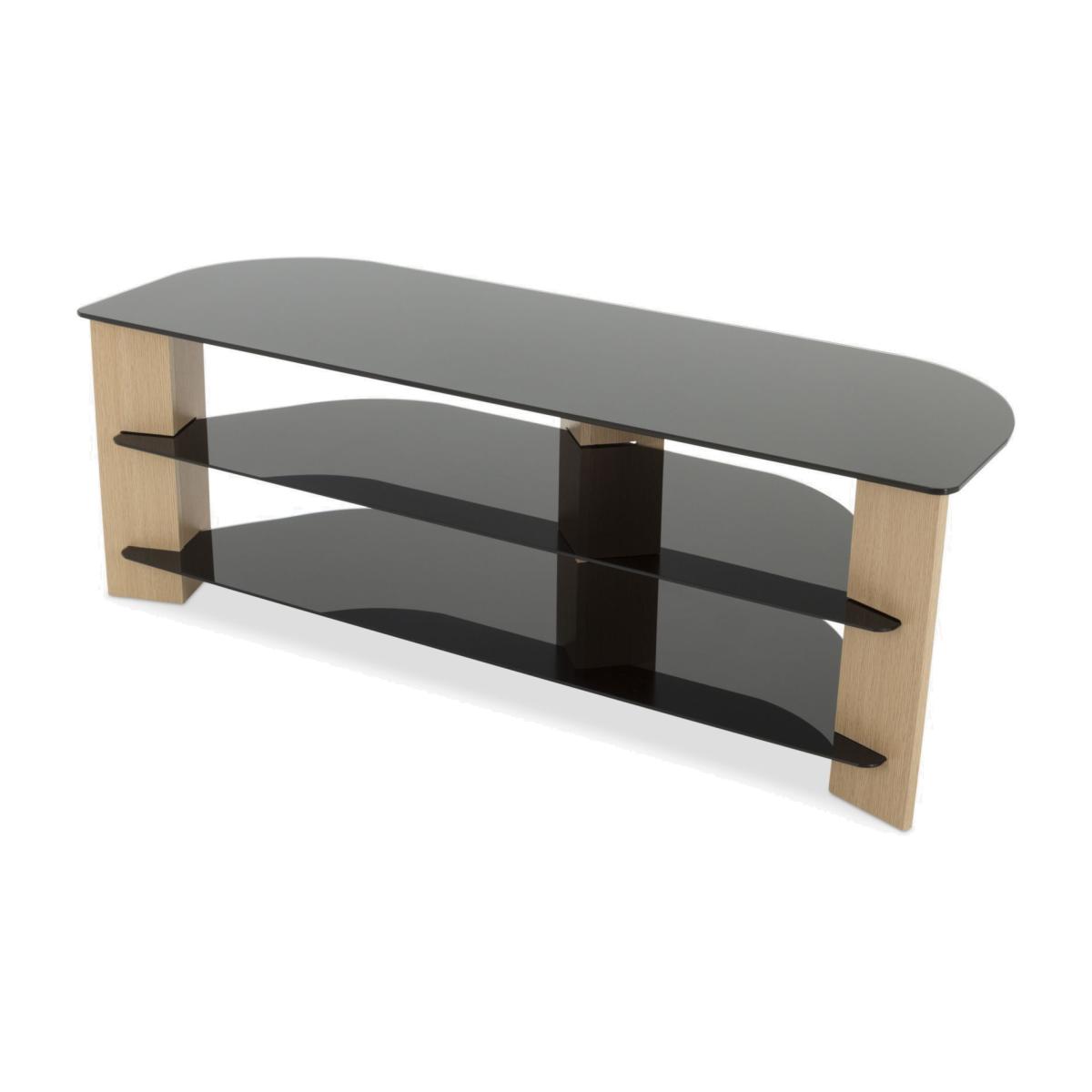 With three beautiful glass shelves, the Varano 1300 gives you generous and easy access storage for all your home entertainment equipment. Its angled legs mean it fits just as well in a corner as flat against a wall. Two lower shelves ensure a large capacity for your receivers, media players and games consoles. Suitable for TVs up to 65", the top shelf supports weights up to 50kg, and its two lower shelves 10kg each. Fits in a corner or flat against a wall Black tempered safety glass top surface and lower shelving Cable management features keep wires neatly out of sight Easy to assemble Any maximum TV size quoted is a recommendation only and the exact dimensions of the TV's pedestal/feet should be checked to ensure it fits prior to purchase.