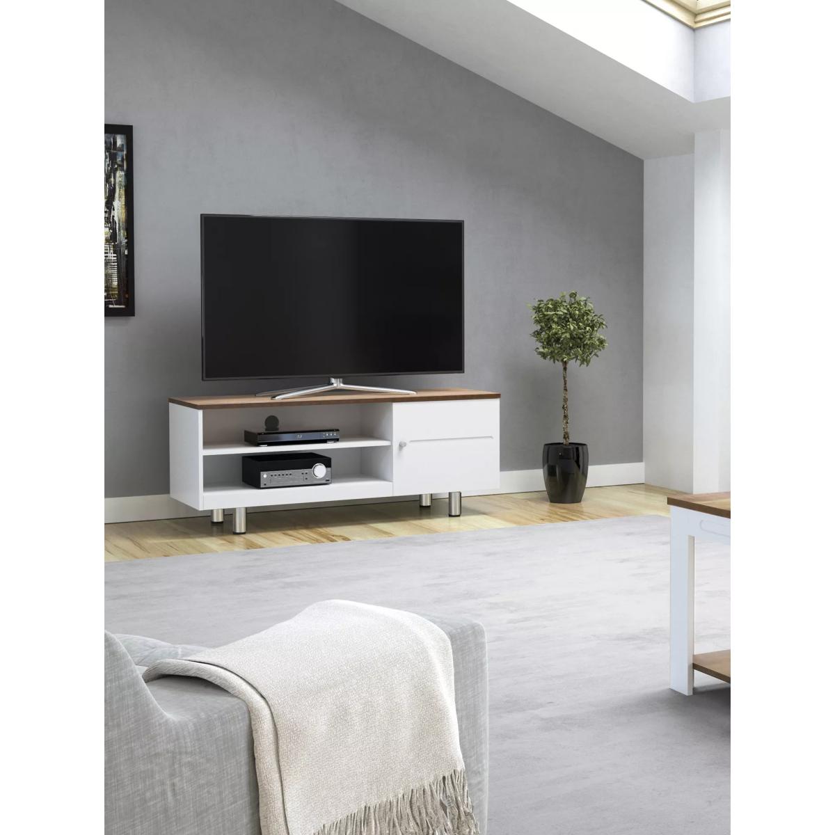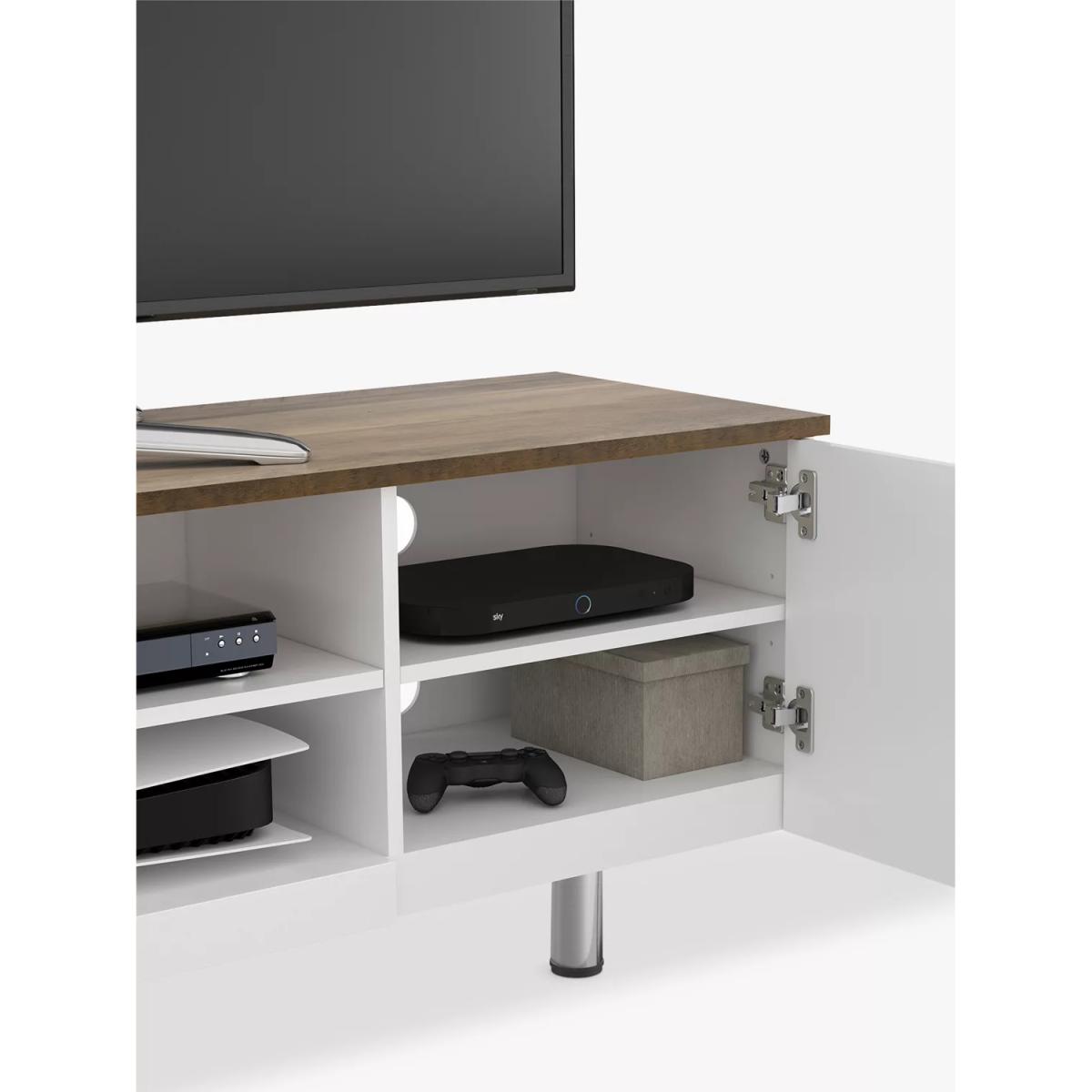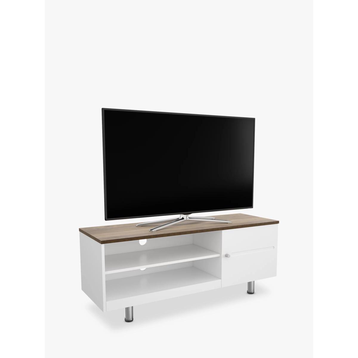 Blending both modern and traditional styling, combining a rustic wooden top with a smooth satin finish, the Whitesands 1200 from AVF creates a contemporary yet homely feel in the living room. With ease-of-assembly by design, it features two large open compartments, which are ideal for soundbars, consoles, media players, and other large AV equipment. Ample closed storage is also provided to the right, by two shelves with premium soft close hinges on the door. In all four compartments, cable management openings at the rear ensure unsightly wires are kept from view for a clean and elegant appearance. Beautiful rustic wood upper surface Cable management features keep wires neatly out of sight Easy to assemble Any maximum TV size quoted is a recommendation only and the exact dimensions of the TV's pedestal/feet should be checked to ensure it fits prior to purchase.