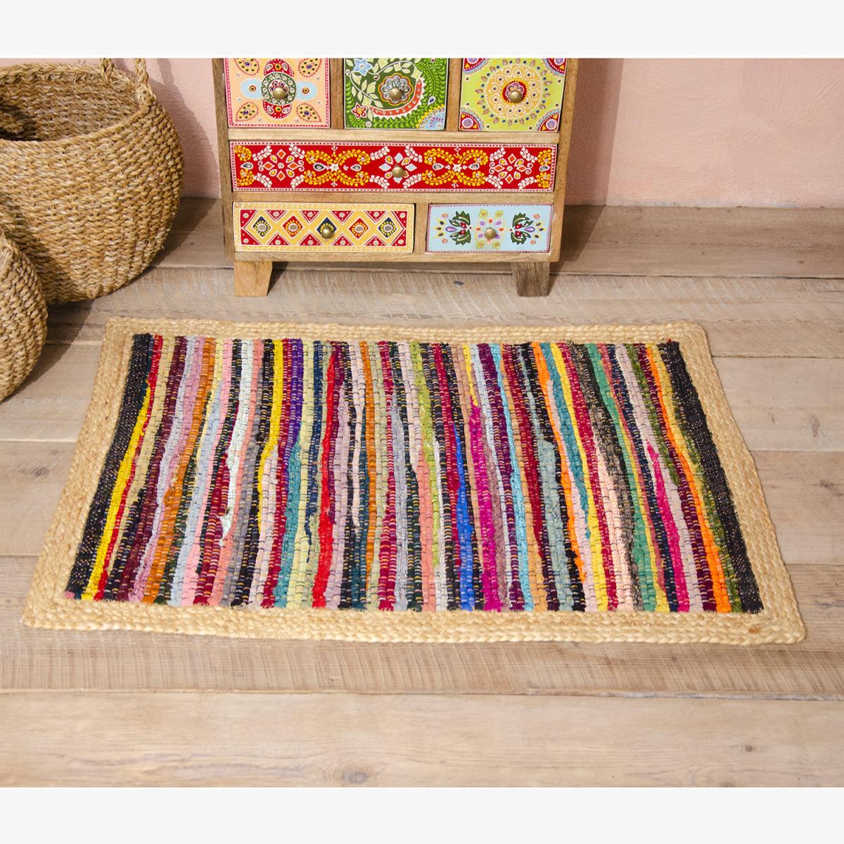 Avi Recycled Chindi Rug With Jute Border - Multi