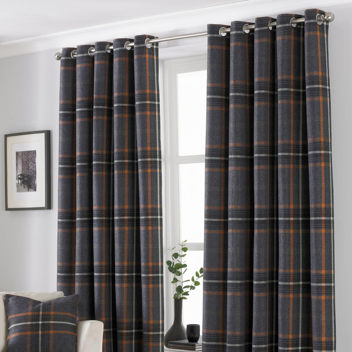Aviemore Tartan Faux Wool Eyelet Curtains - Rust / 229cm / 183cm