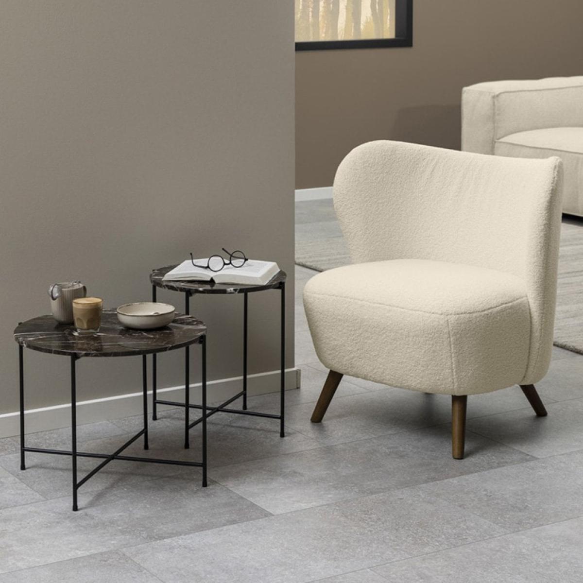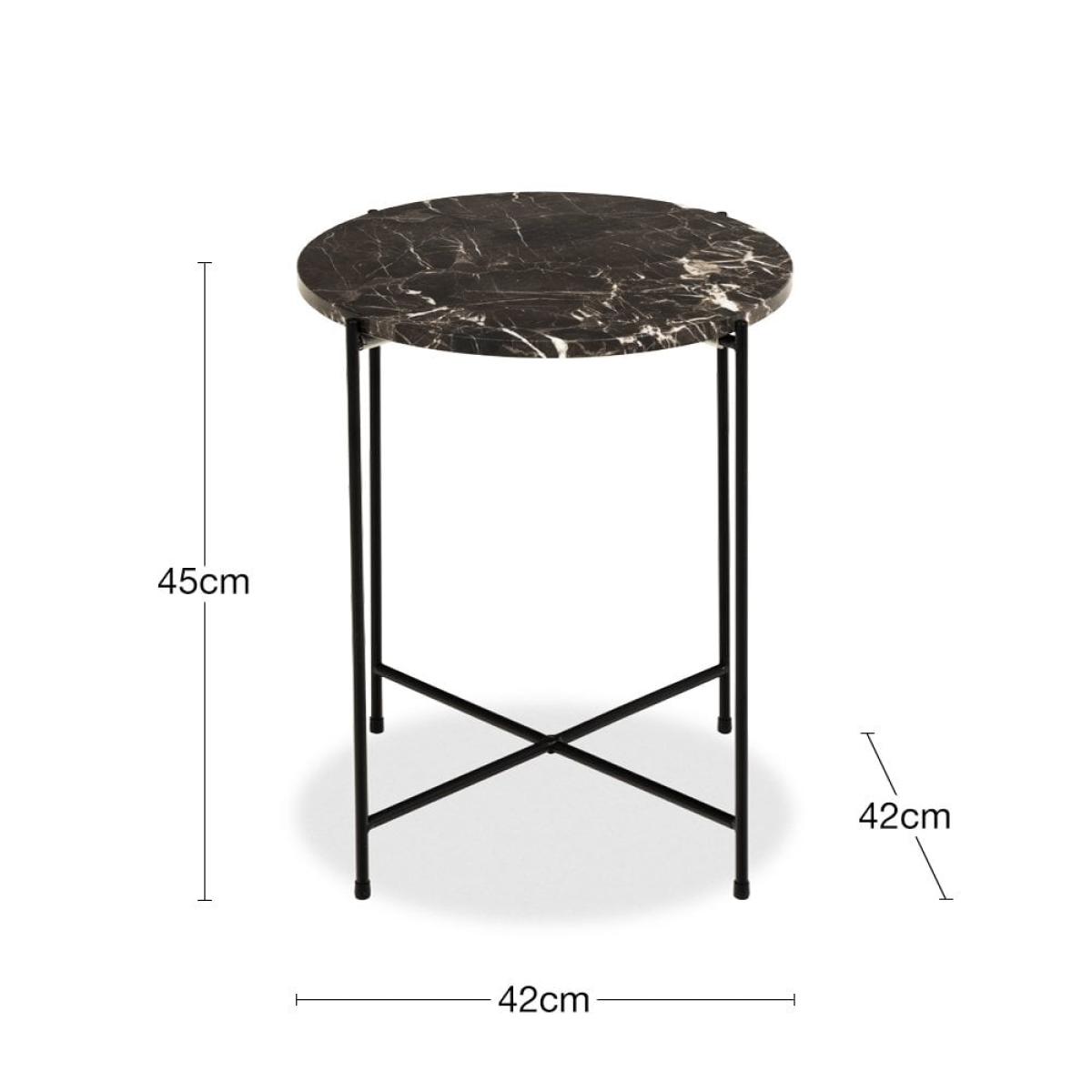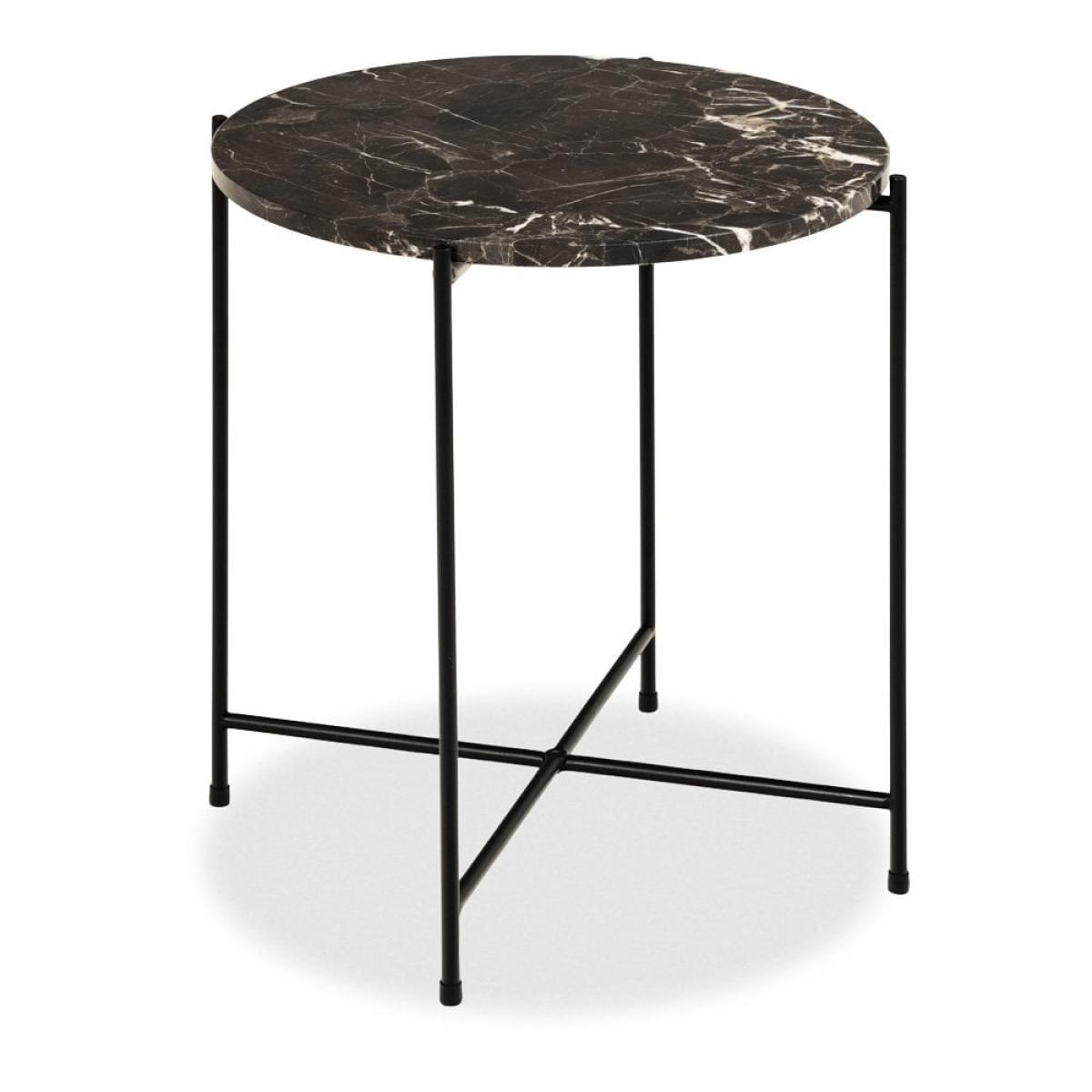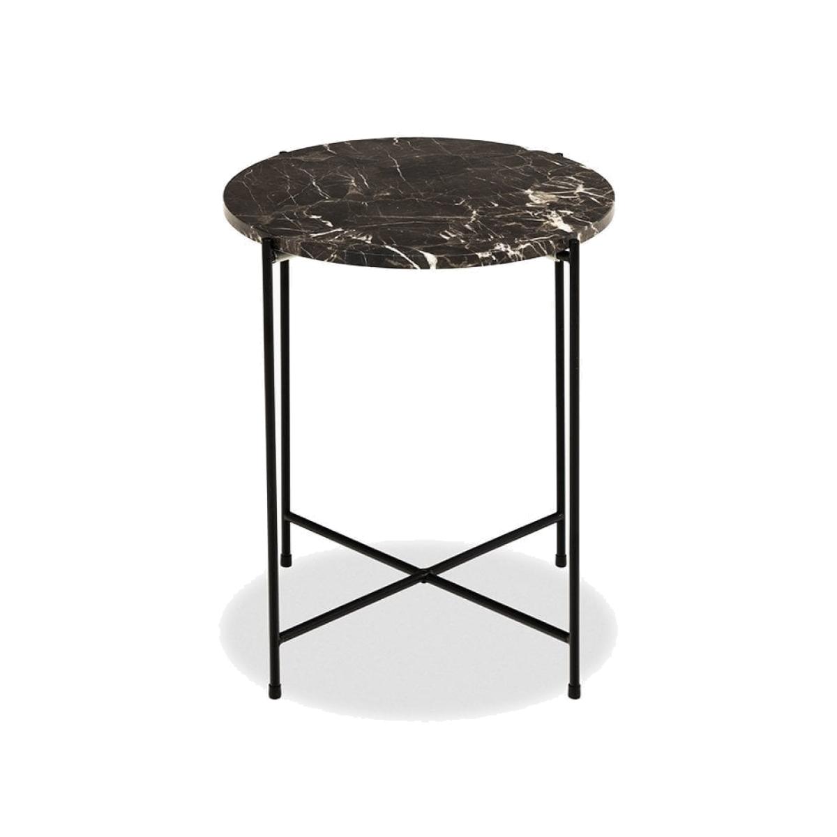 The Avila Round Side Table, with its compact design and sleek silhouette, is crafted from brown marble and slim matte powder-coated metal base. The circular top is perched upon a criss-cross design frame forming a striking contrast against the luxe marble. The various hues that run through the polished stone make each piece unique to you. This product is handcrafted from natural marble, making each piece unique with naturally occurring texture, pattern, and colour. These variations should be seen as part of the beauty of the design that makes this a truly one-of-a-kind piece.