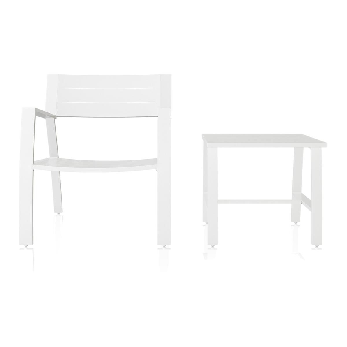 Enjoy a beverage alfresco and rest your derriere on the Cosmo. Living Avisa 2 Piece Outdoor Set. Upgrade your balcony or patio by adding this durable steel set which comes with a chair and side table coated in a white weather-resistant finish. The Avisa is an ideal small outdoor space solution, perfect for those days when you need some air after working for the weekend. Avisa Collection 2 Piece Outdoor Bistro Set - White