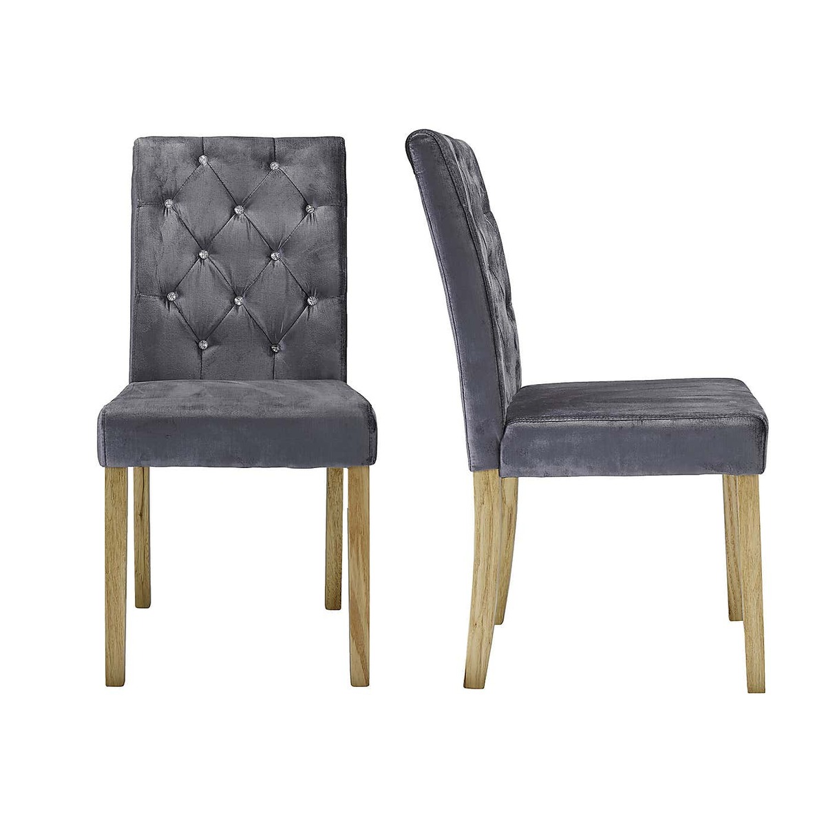 Upholstered in a sumptuous velvet fabric, the Avola pair of dining chairs offer an elegant, luxurious style, emphasised by the quilted back with a gorgeous crystal button detail. These part assembly chairs feature stylish wooden legs and a foam-filled seat for added comfort. Please note, unfortunately we cannot deliver this item to the Channel Islands.