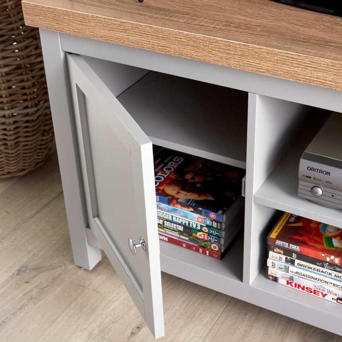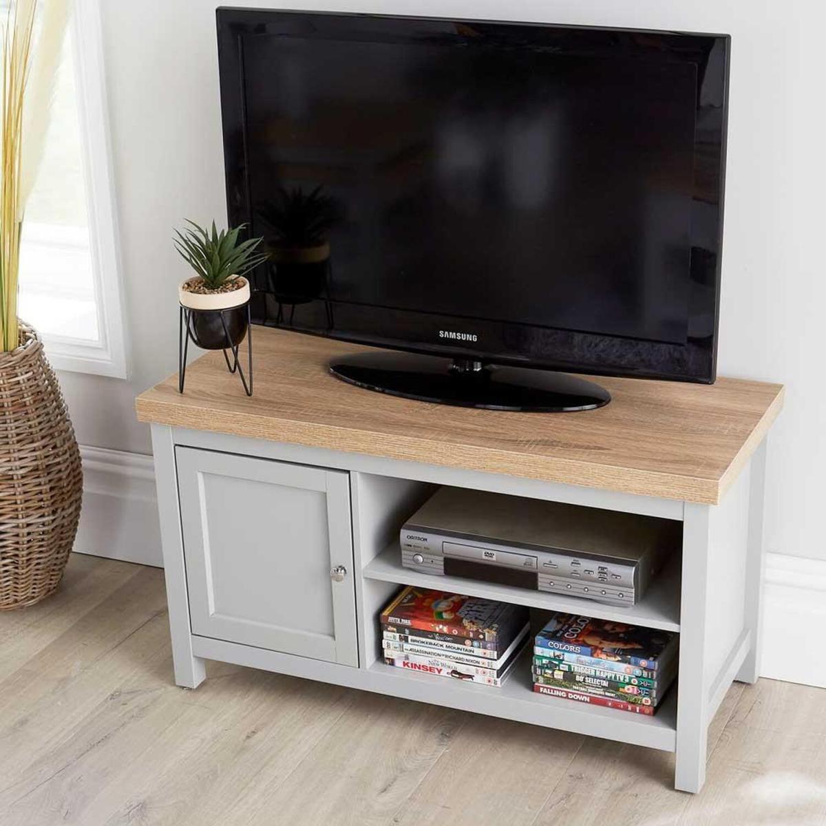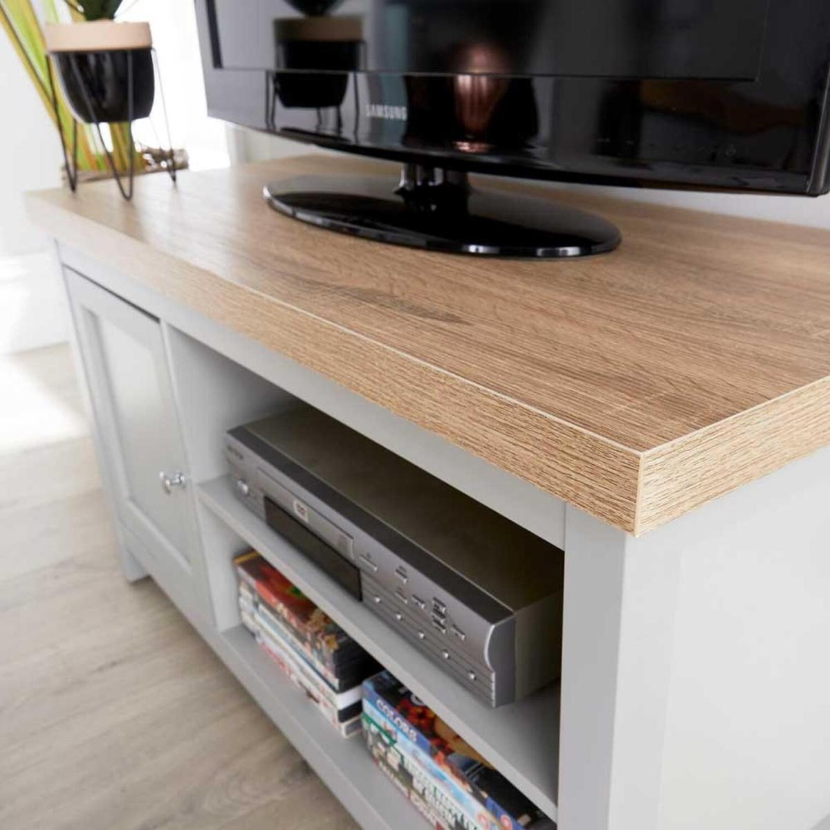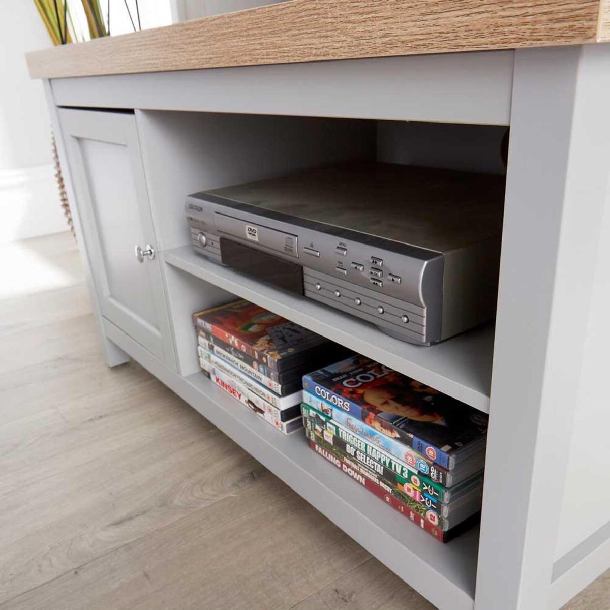 Part of the Avon Collection, this Small TV Unit still has room for a generously sized flat-screen TV, plus all your other viewing tech too. This Small TV Unit is 97cm wide but still gives you great space for all your viewing technology. It has room for a wide flat-screen TV, plus 2 open shelves for remote-controlled satellite equipment etc. Plus, there's a handy cupboard with 2 shelf spaces for everything else video consoles, hand, and headsets, karaoke mics, cables, and connectors.