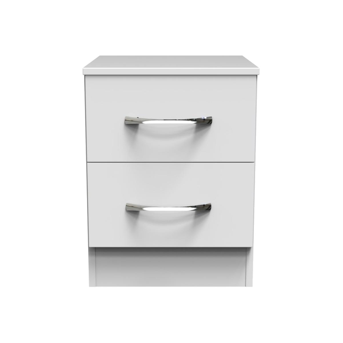 This 2 drawer bedside cabinet is practical and stylish. Perfect for any bedside or as a free standing storage unit. A great-value furniture range with a sleek classic look and feel that just right for any interior. The simple, no-fuss design features clean lines and stylish chrome handles. A timeless design that will withstand the changes of fashion. All our furniture is made in the United Kingdom, to the highest quality. It is delivered direct to your location of choice by one of our two man delivery teams, and come full assembled (although legs may be removed to prevent damage in transit).