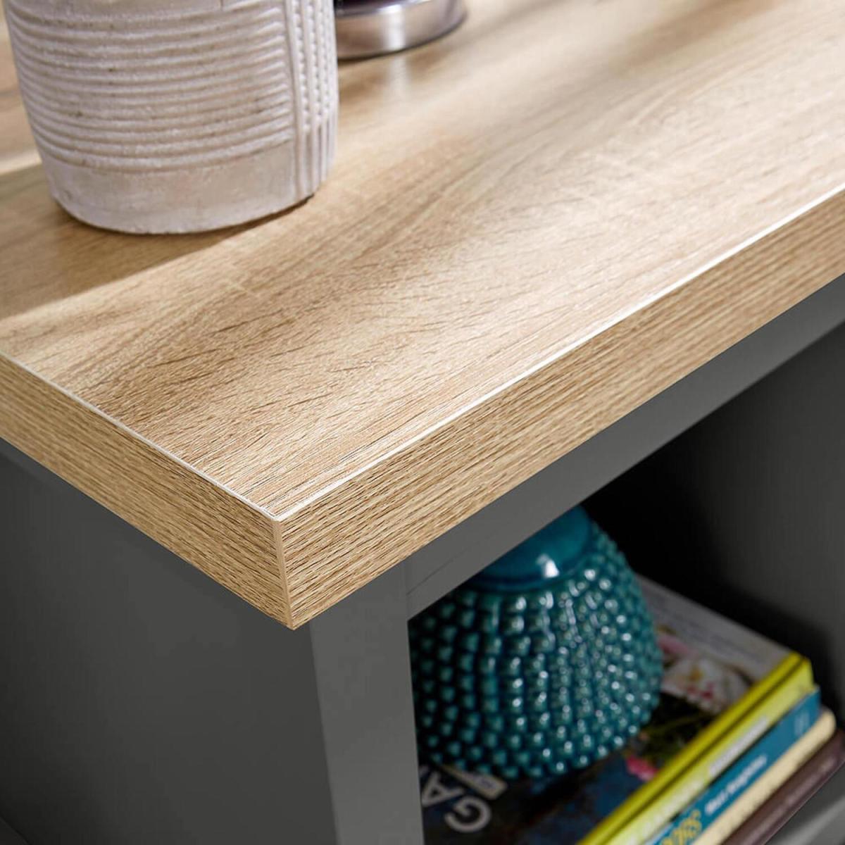 Part of the Avon Collection, this small lamp Table is also a handy side table next to your armchair or sofa. Available in graphite or grey with a Sonoma oak finish top, the table has a square wood grain surface. It is useful as an occasional table in your hallway, landing, or bedroom. It is suitable for your lounge as you can have your drinks and snacks to hand or your mobile and remote controls at your fingertips. Everything is right where you want it. Of course, it also looks great with a large ornament or arrangement of flowers to light up a corner.