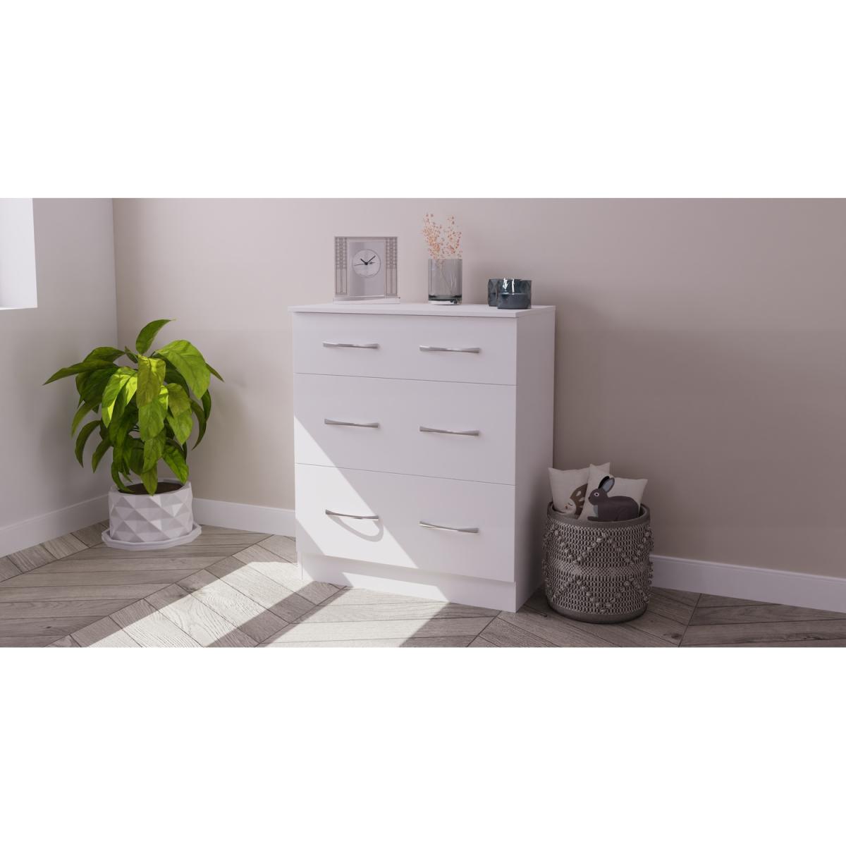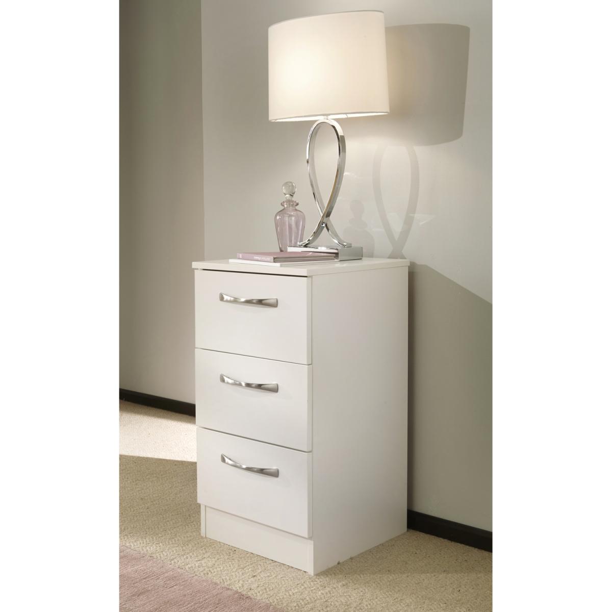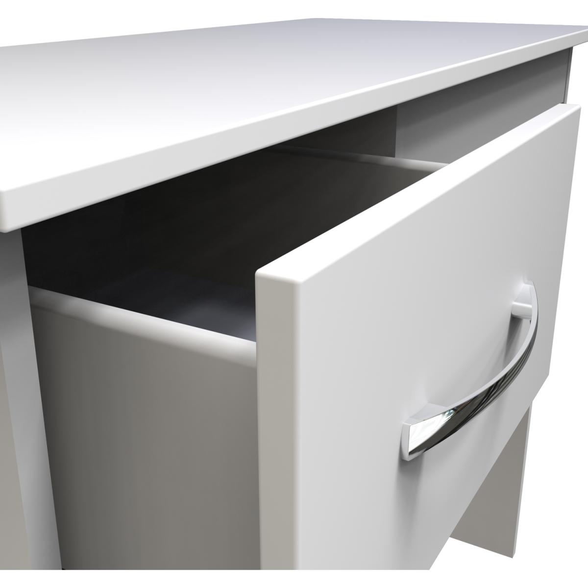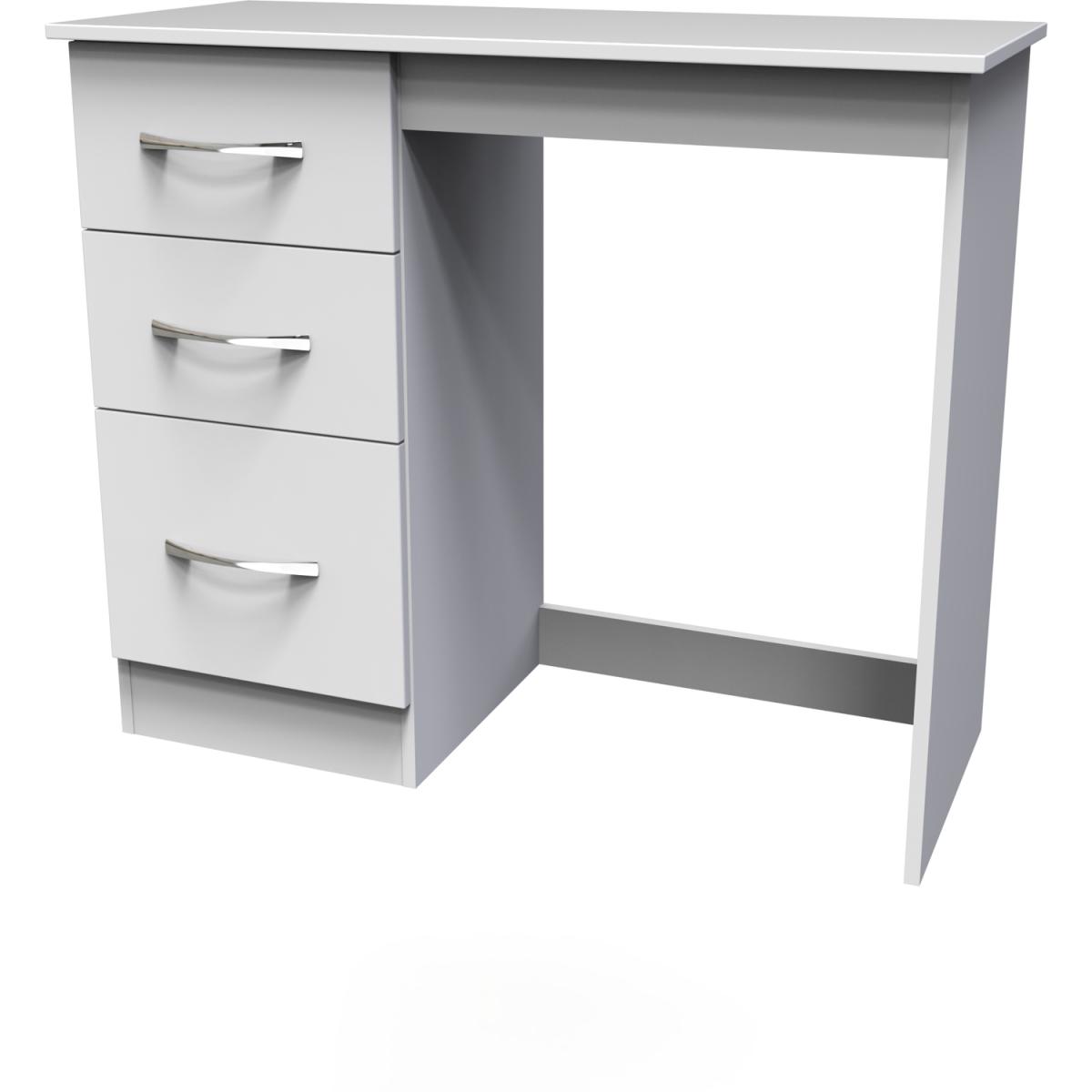 This practical 3 drawer narrow deskvanity is perfect for any bedroom or office. A matching stool and mirror (in 2 sizes) are also available. A great-value furniture range with a sleek classic look and feel that just right for any interior. The simple, no-fuss design features clean lines and stylish chrome handles. A timeless design that will withstand the changes of fashion. All our furniture is made in the United Kingdom, to the highest quality. It is delivered direct to your location of choice by one of our two man delivery teams, and come full assembled (although legs may be removed to prevent damage in transit).