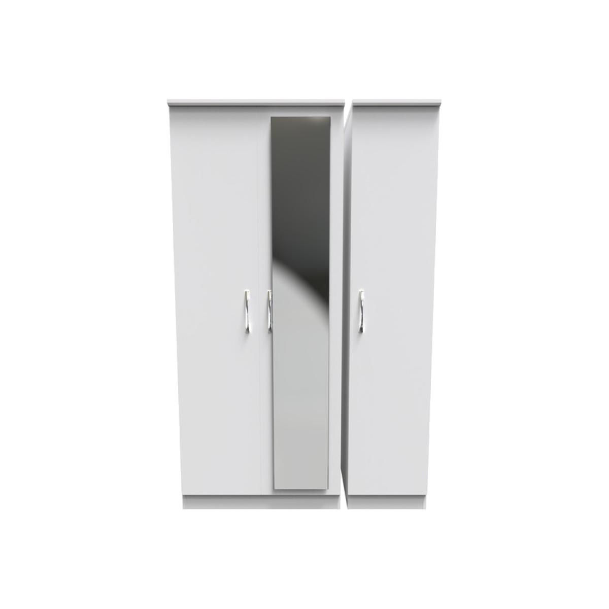 Avon Triple Mirrored Wardrobe in White Matt - White Matt