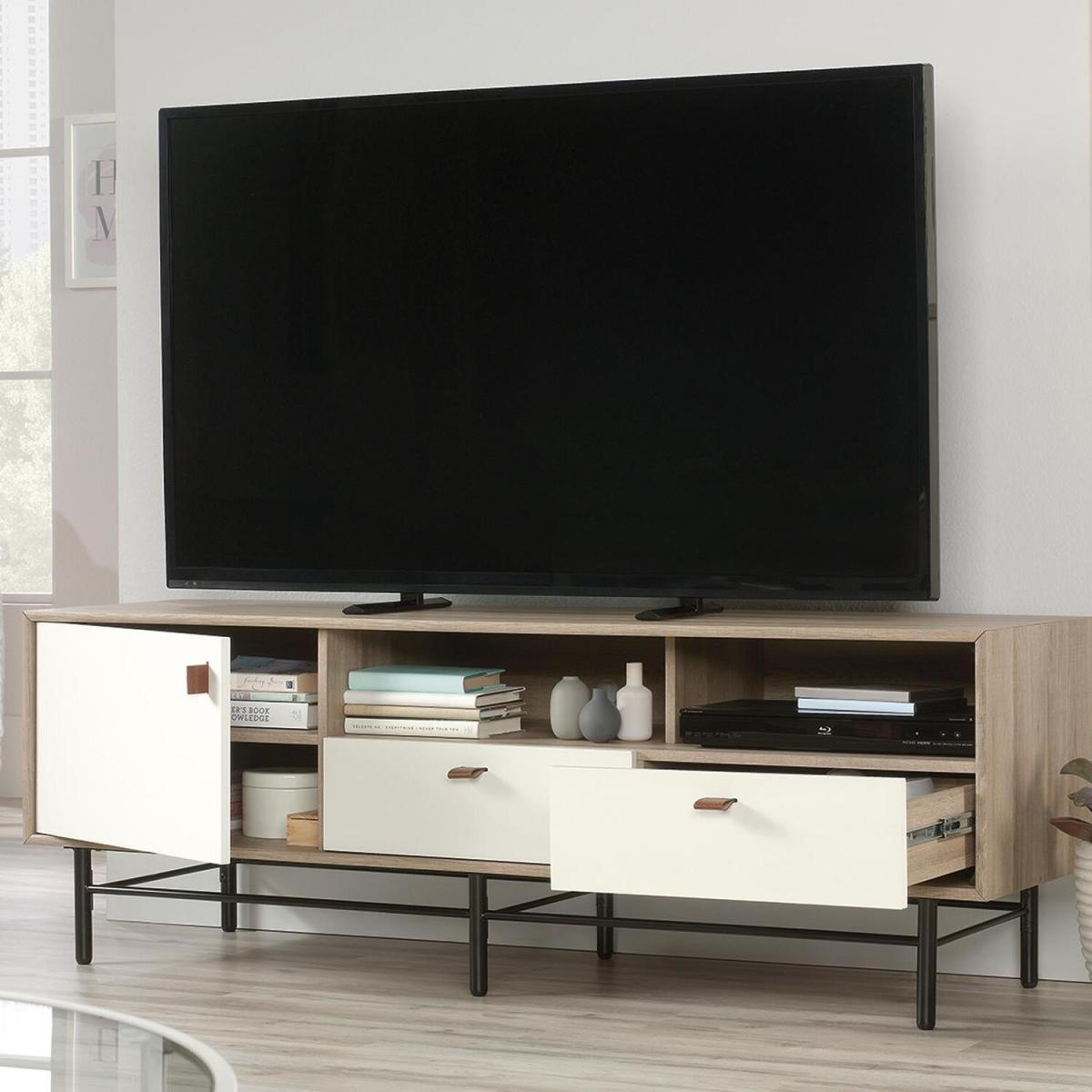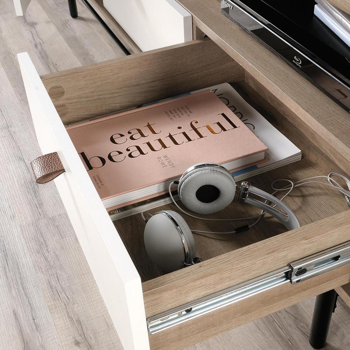 The Teknik Office Avon Leather Handled Wall Desk is a charming and neutrally coloured option for all styles of office and colour schemes. This fresh and modern styled space saving hanging desk is finished in white with a Sky Oak effect flip down door, this provides a convenient solution for those with limited space. This hanging desk is versatile enough to place anywhere in your home or office and the door can be lowered down to create a spacious desk work area for your laptop, office accessories and possibly even a cup of your favourite tea! Once the desk is fully opened, there is also a large contrasting grey bulletin style board in front of you, perfect for pinning your reminders and paperwork in full view for when you need them. An open upper shelf on top of the desk completes the look for displaying all manner of home decor. The look is completed with the front also featuring an unusual yet stunning addition of a drawer pull in durable brown leather for an extra touch of class. A beautiful and versatile wall desk which will blend effortlessly within your home or working area.