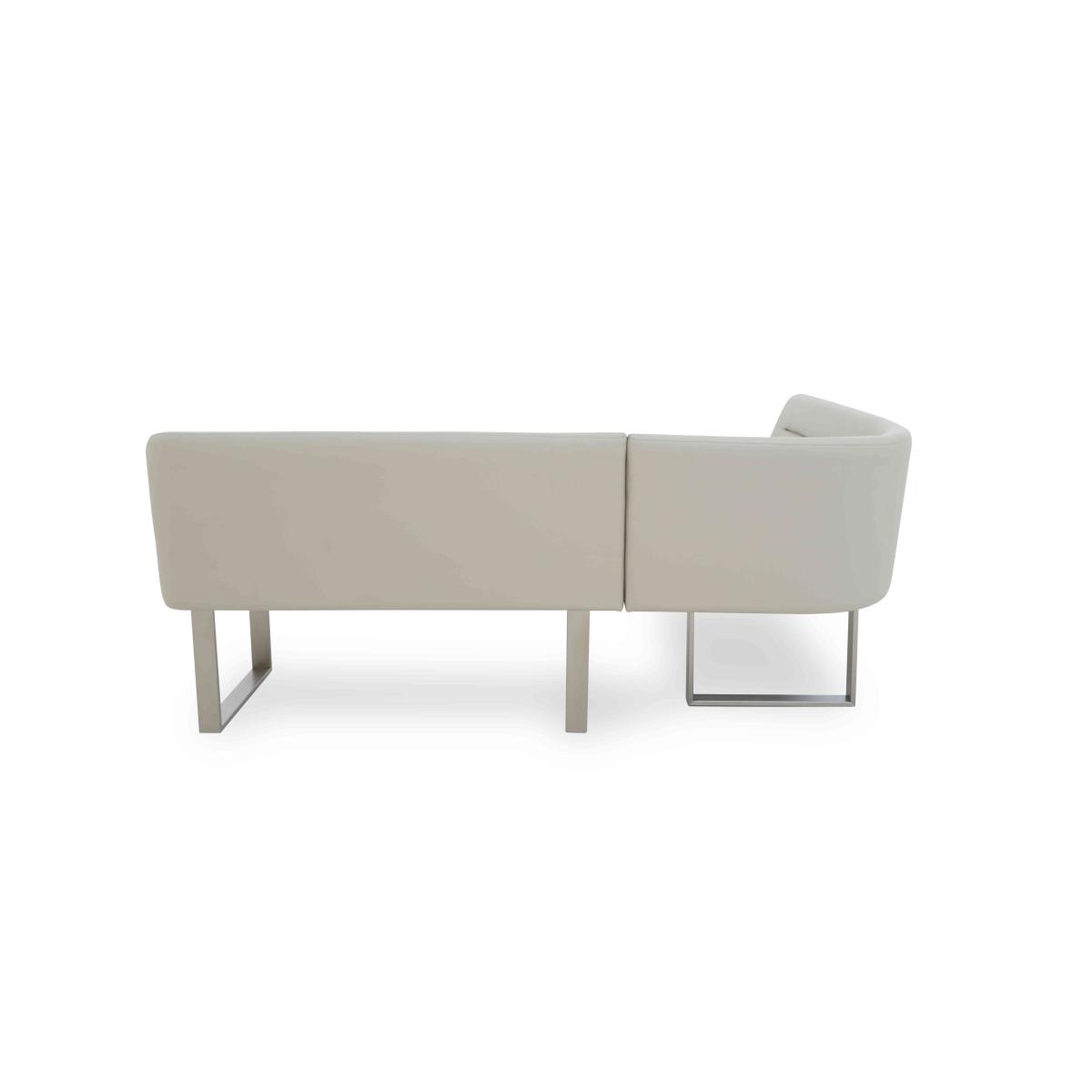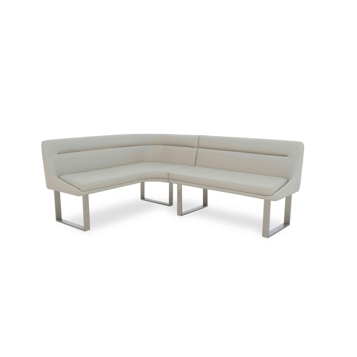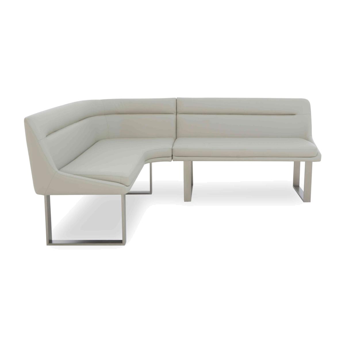 All the high-end style of marble furniture, all the family-friendly durability of ceramic, and all at a great-value price – our Avorio range makes it easy to furnish living and dining spaces in glossy ceramic style. The collection includes both fixed and extending dining tables – and we think you’ll love those slick pop-up and swivel extension mechanisms – dining sets, dining chairs and bar stools, occasional tables, media cabinets and more. Storage and display pieces have sleek rounded edges and decorative fluting that matches the tables’ pedestal bases as well as alcoves and shelves with built-in LED lighting. The Avorio range is exclusive to Furniture Village. Make good use of a kitchen diner corner with this stylish and very comfortable faux leather left-hand facing corner dining bench. Great price, too. Why you'll love it Sleek modern style at a great-value price. Comfy curved seat with supportive backrest. Soft faux leather upholstery in a versatile neutral colour. Elegant, minimal stitching detail. Metal U-shaped legs. This is a left-hand facing bench. The section with the corner is on the left. Also available as a right-hand facing corner bench. Only at Furniture Village. This corner dining bench is part of our Avorio range. What you need to know Seats 5 adults. Metal frame and legs. Cushioned with foam. Designed to pair with any of the Avorio range dining tables.