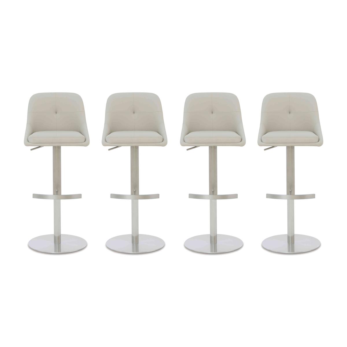 All the high-end style of marble furniture, all the family-friendly durability of ceramic, and all at a great-value price – our Avorio range makes it easy to furnish living and dining spaces in glossy ceramic style. The collection includes both fixed and extending dining tables – and we think you’ll love those slick pop-up and swivel extension mechanisms – dining sets, dining chairs and bar stools, occasional tables, media cabinets and more. Storage and display pieces have sleek rounded edges and decorative fluting that matches the tables’ pedestal bases as well as alcoves and shelves with built-in LED lighting. The Avorio range is exclusive to Furniture Village. Make your bar table or countertop the place to dine in style with this set of four on-trend bar stools. And with swivel bases they save space in a smaller dining area. Incredible value. Why you'll love it Sleek modern style at a great-value price. Comfy seats and supportive backrests with understated stitching and buttoning. Soft faux leather upholstery in a versatile neutral colour. Swivel bases with footrest set on a square plinth. Only at Furniture Village. This set of 4 swivel bar stools is part of our Avorio range. What you need to know Metal frames and bases. Cushioned with foam. The perfect bar stools for our Avorio bar table.