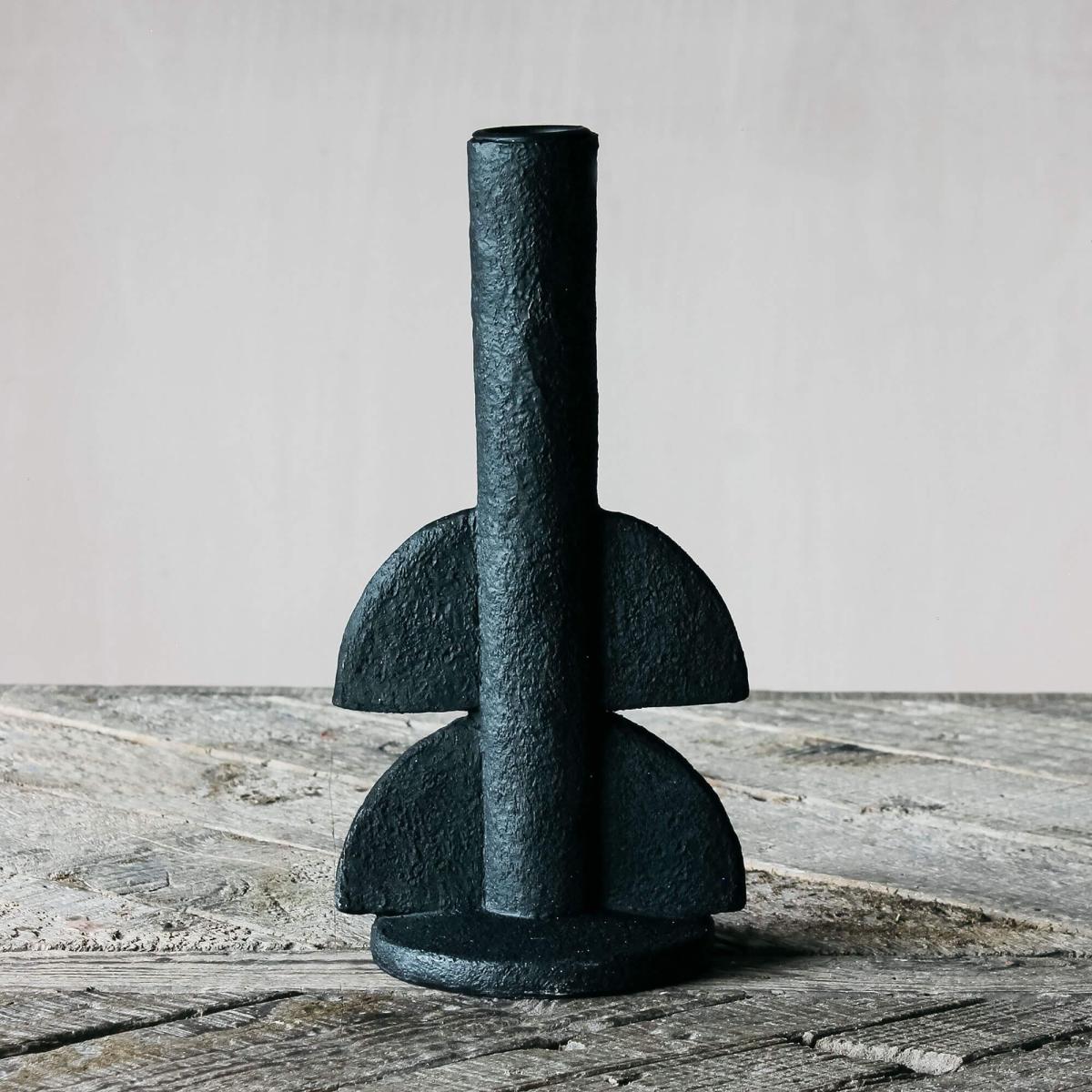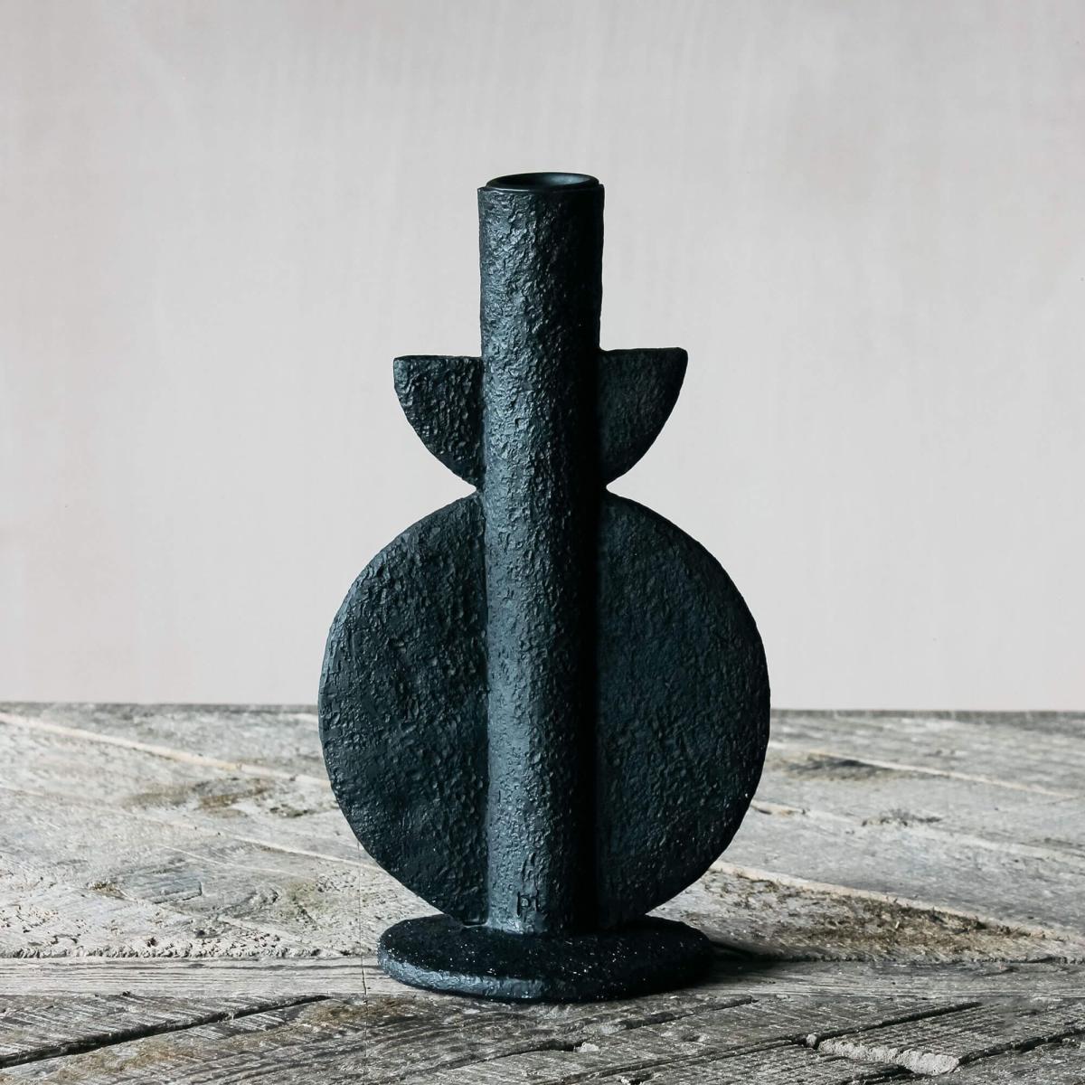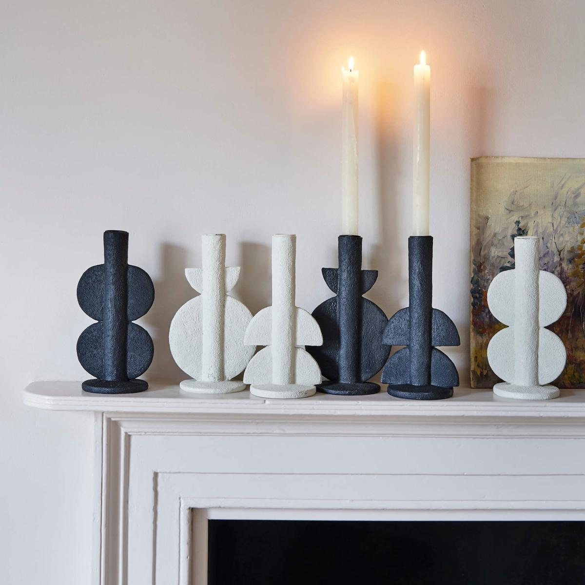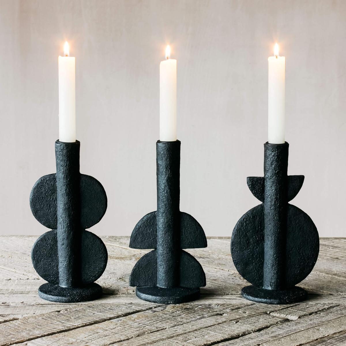 A striking collection of black candle holders with abstract geometric shapes and a rough textured finish. Collect all styles and pair with coloured dining candles.