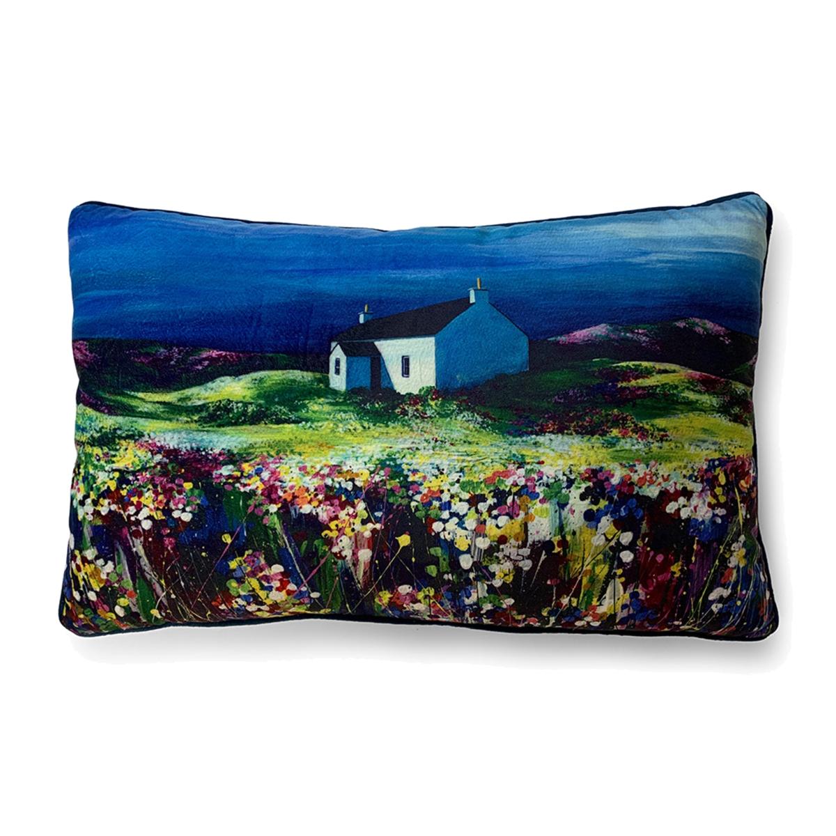 Avril Thomson Smith Summer Shades Velvet Rectangle Cushion Blue
