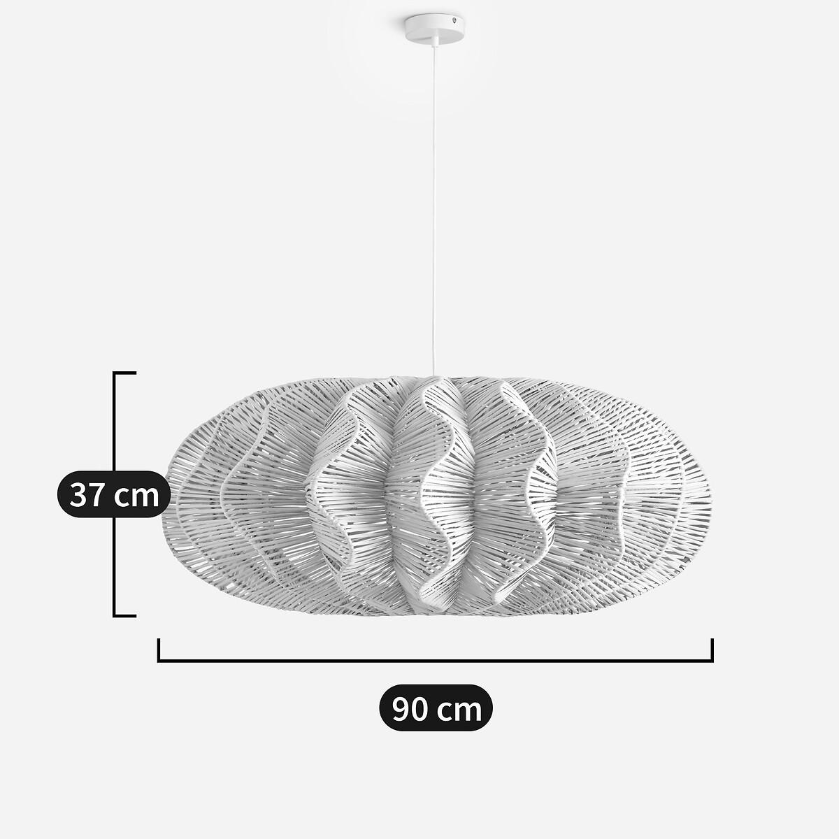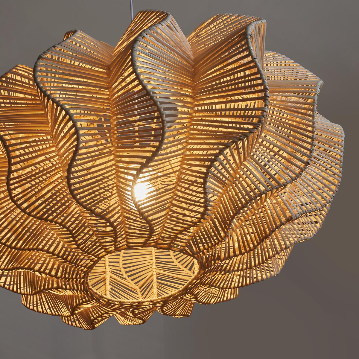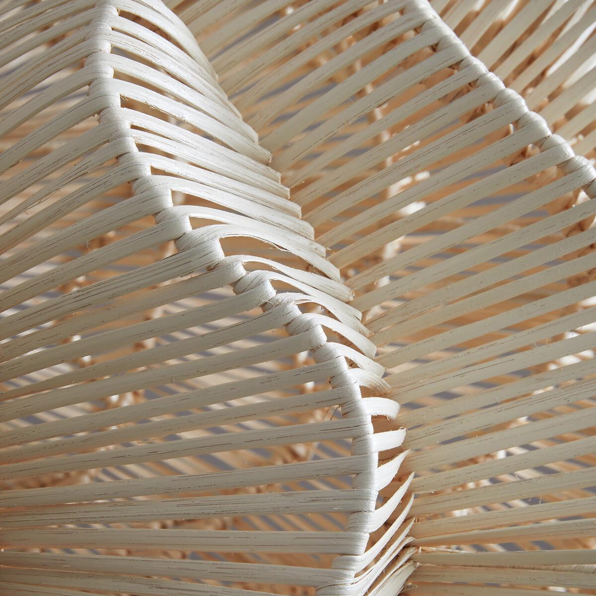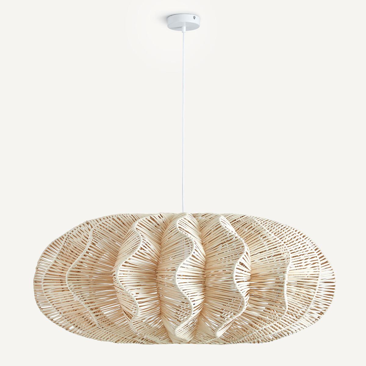 Made from hand-woven rattan, this hanging lamp is inspired by the art of traditional Indonesian basketry. Light and airy, it dresses up the space as much as it structures it. But it's when it's lit that it redraws it, creating delicate shadows through its fine trellis that are projected onto the walls and ceiling. An AMPM creation. Product Details • Hand-woven rattan, each piece is unique • Supports E27 bulb (not supplied) • This product is not electrified, it is compatible with the Sevigni electric cable sold on our site.. Dimensions • Width: 90cm • Height: 37cm • Depth: 72cm • Weight: 2.7kg • Sold pre-assembled. Parcel Dimensions: • 1 parcel • W93 x H76 x D43cm. 6.2kg