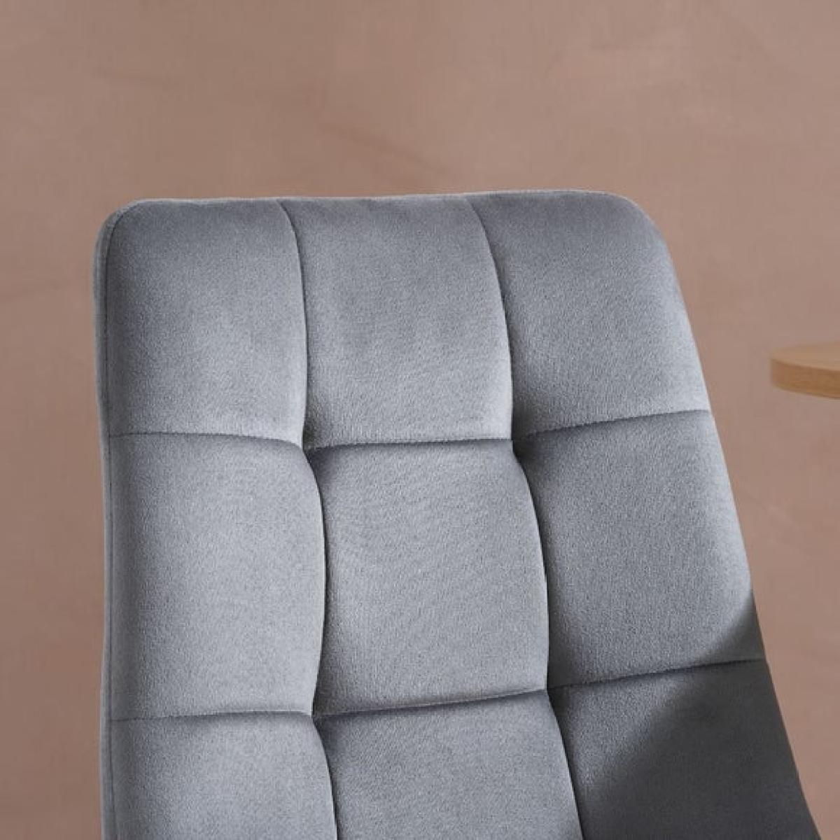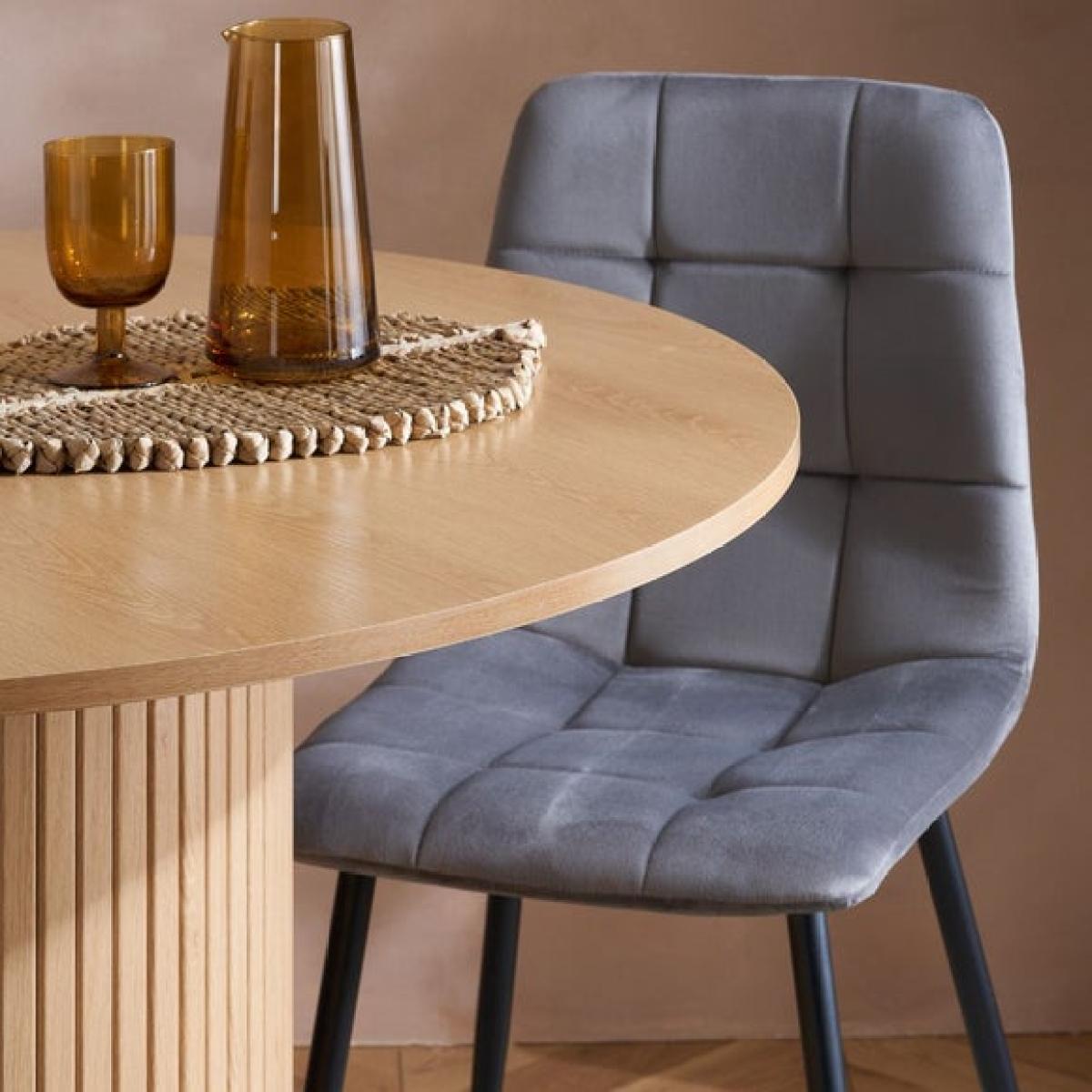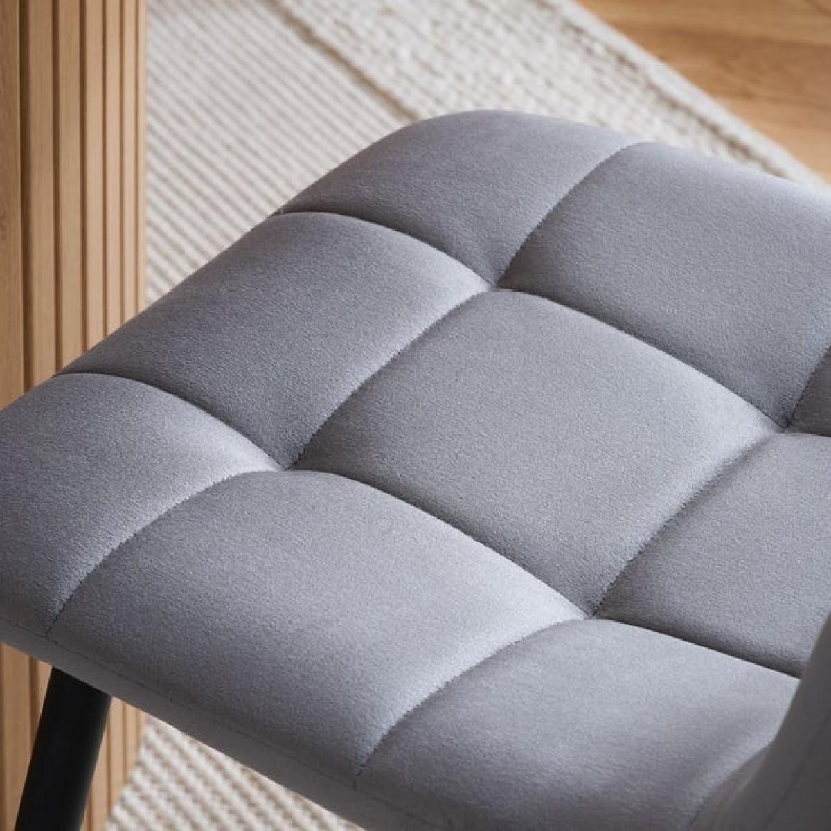 * Set of 2 dining chairs * Velvet upholstery * Soft grey colour * 'Button' back detail Add a touch of style to your dining space with the Axel Set of 2 Velvet Dining Chairs. Upholstered in soft grey velvet, they offer a smooth, comfortable seat with a refined look. The hidden button back detail adds subtle character, making them a stylish choice for both everyday meals and special occasions. Sold as a set of two, they’re ideal for pairing with a variety of table styles, and their versatile design suits both modern and classic interiors. A simple way to refresh your dining area with understated chic.