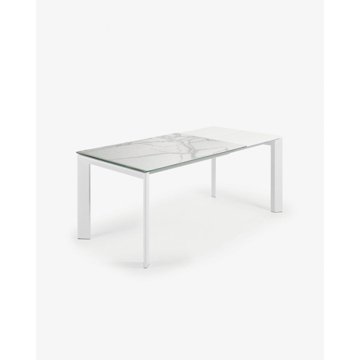 I’m a fan of the Axis table for its clean lines and sturdy white legs paired with a marble-effect top - it brings a bright, uncluttered feel without dominating a room. Its straightforward design works equally well in Scandi-inspired spaces, contemporary flats or minimalist home offices. To style it, keep seating light and slim-profile (think white or pale wood chairs) and layer in texture with a neutral rug underneath. A simple centrepiece - perhaps a low vase of foliage or a set of stackable storage trays - will add interest without detracting from the table’s crisp silhouette.