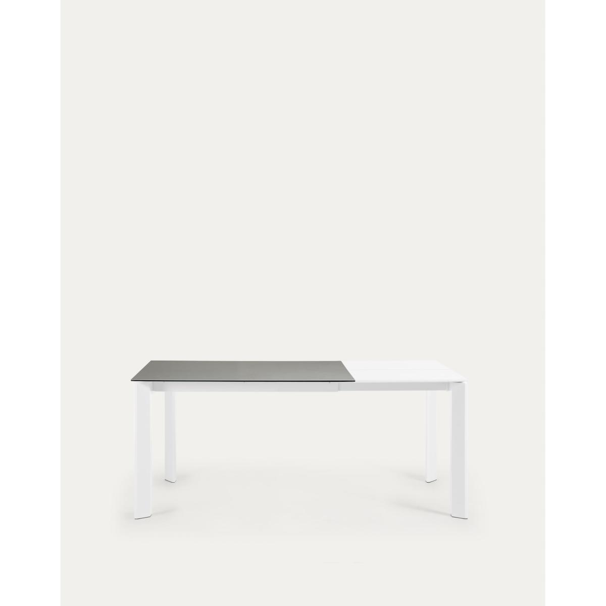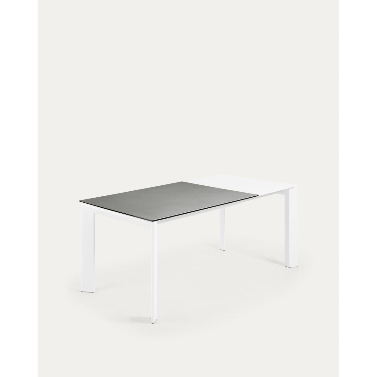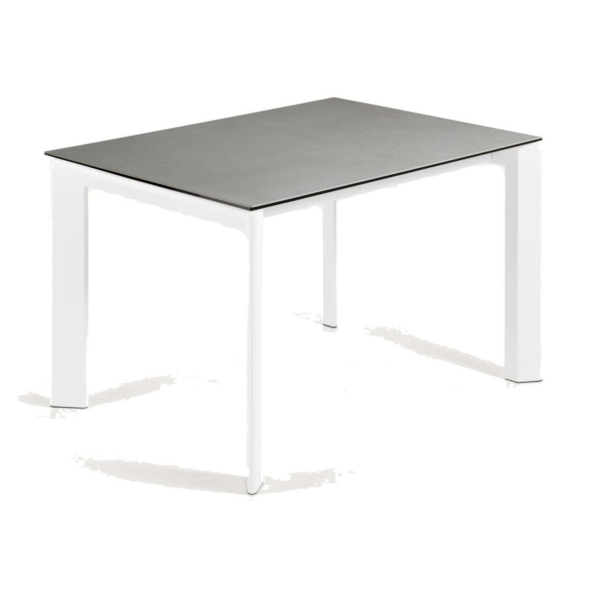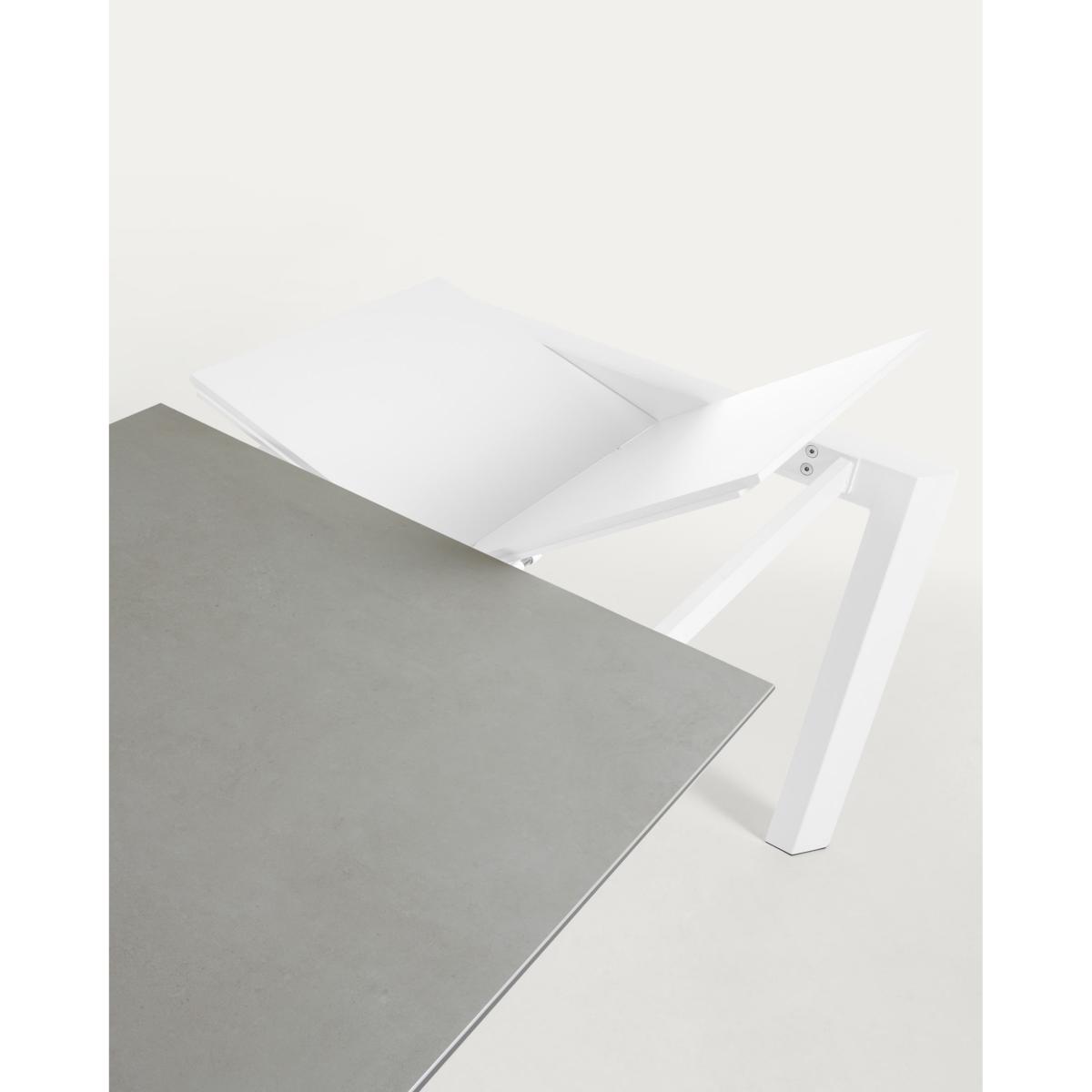 Axis extendable ceramic table with Hydra Plomo finish and white steel legs 120 (180) cm