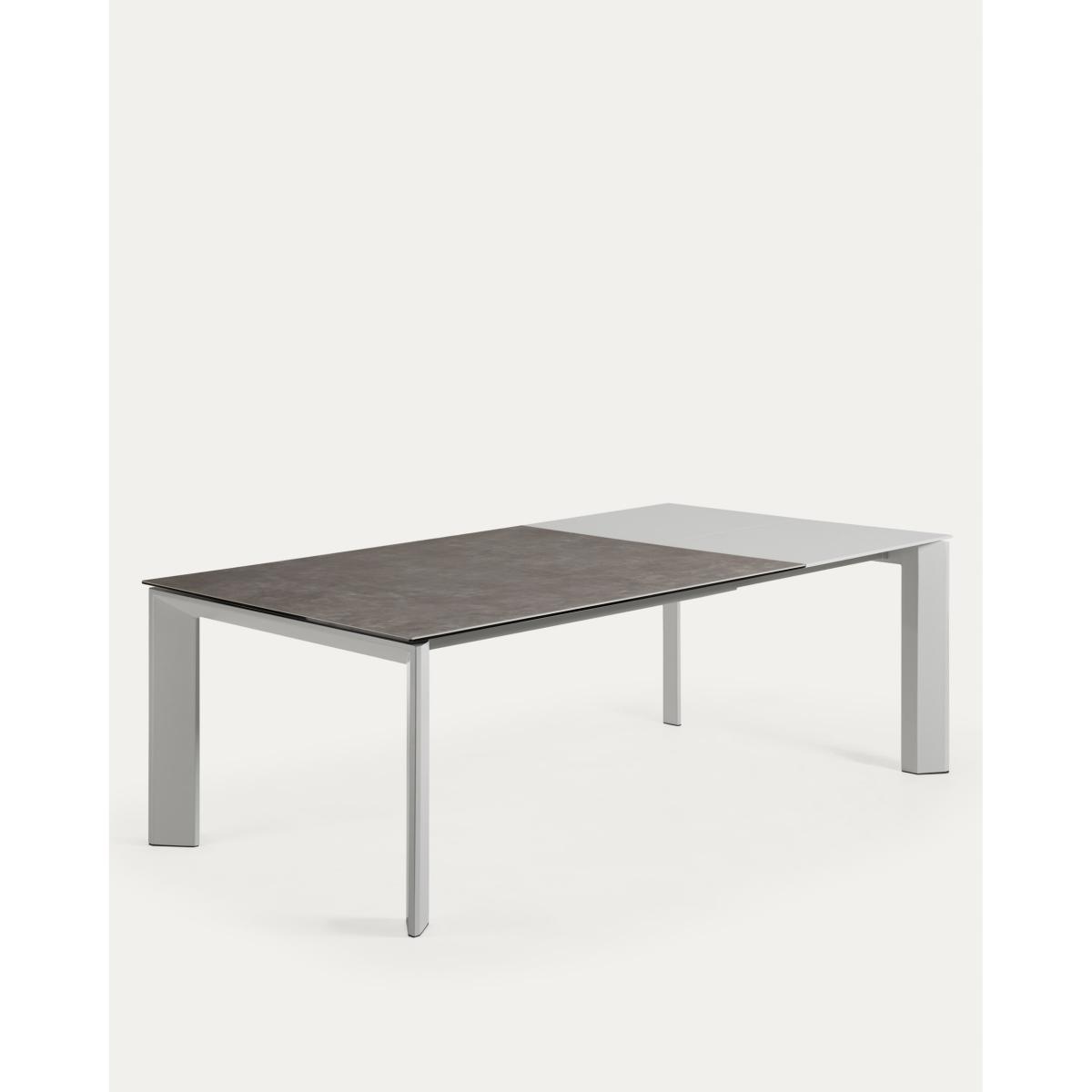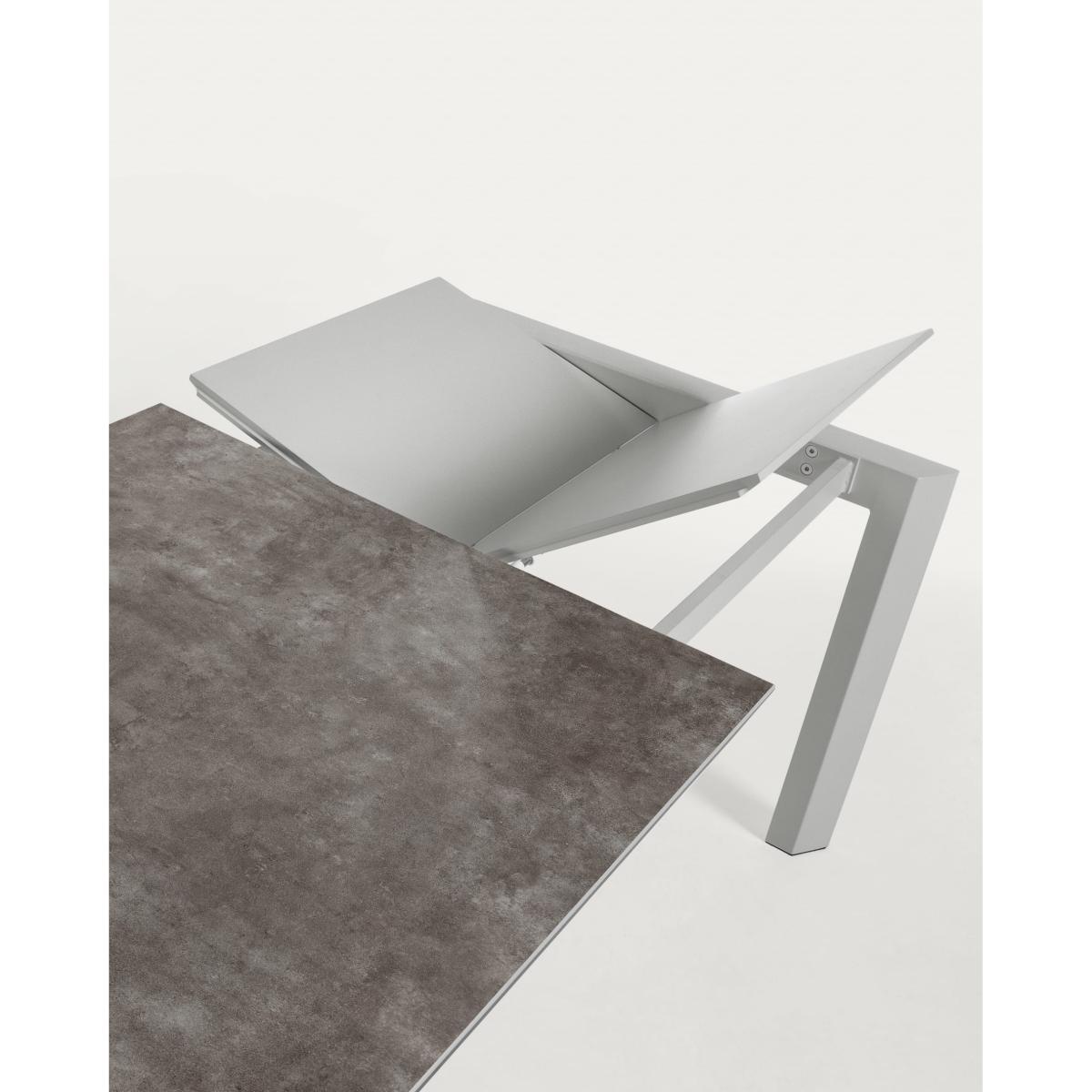 Axis extendable ceramic table with Vulcano Ceniza finish and grey steel legs 160 (220) cm