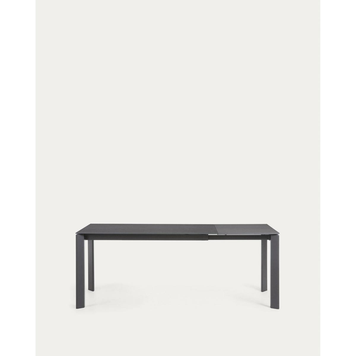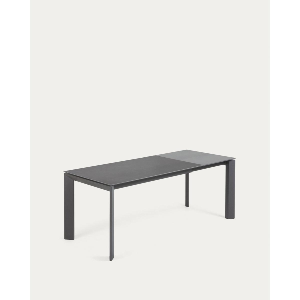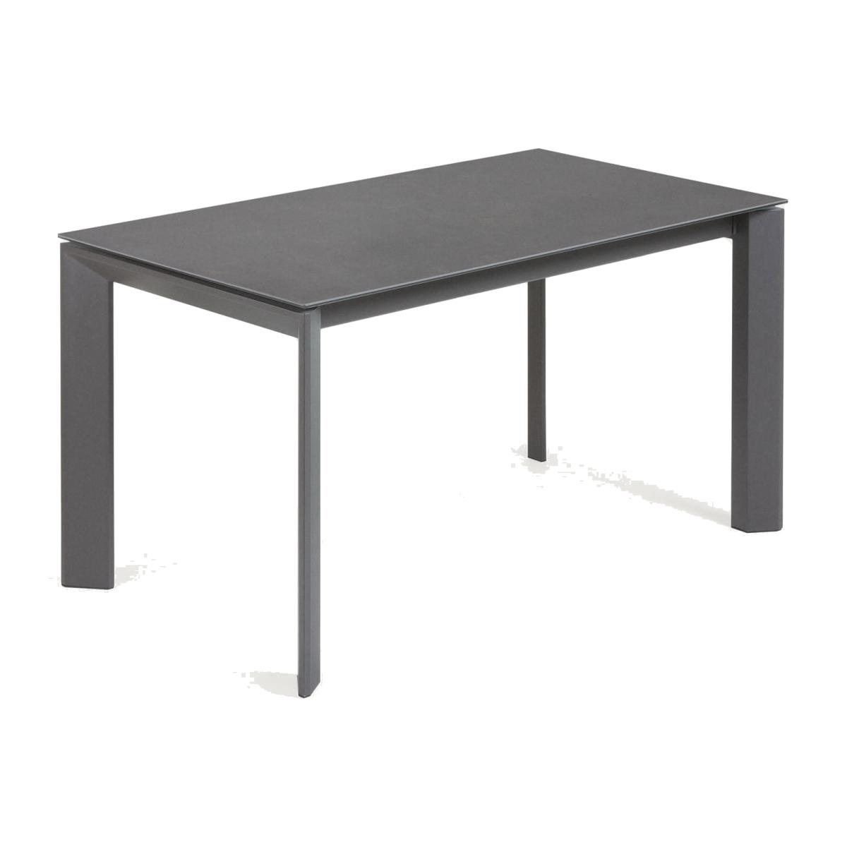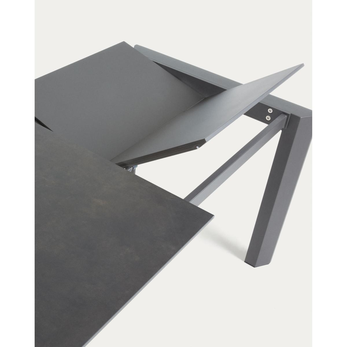 Axis extendable porcelain table with Volcano Rock finish and dark grey steel legs, 140 (200) cm