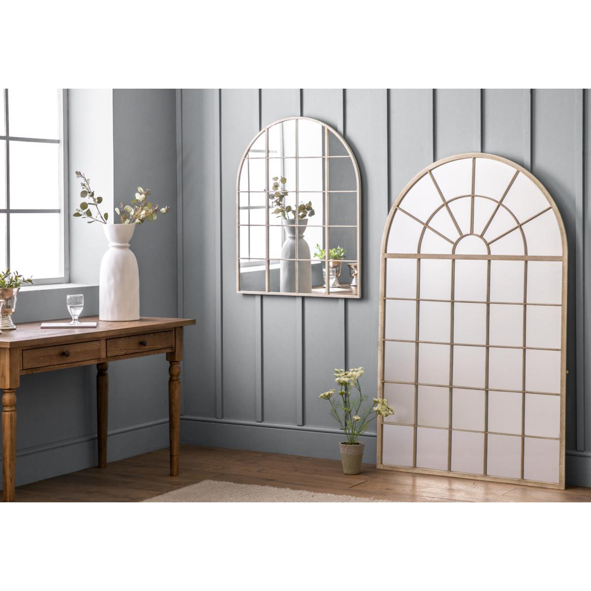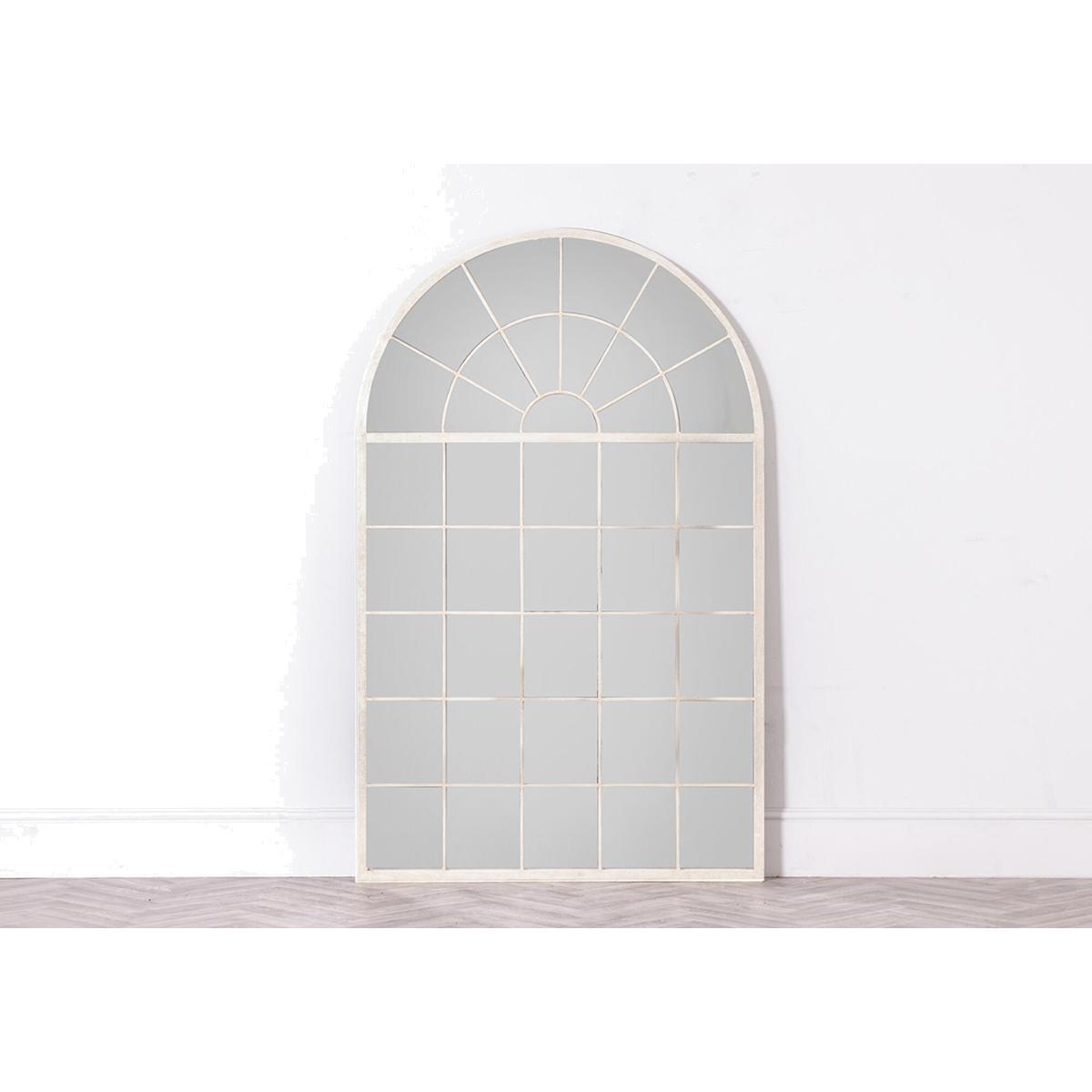 A classic arched frame in White surrounds the Axton Large Window Leaner Mirror, and a delicate White framework overlays the interior area to add interest and structure to the Glass. A real classic, at home in any style of decor.