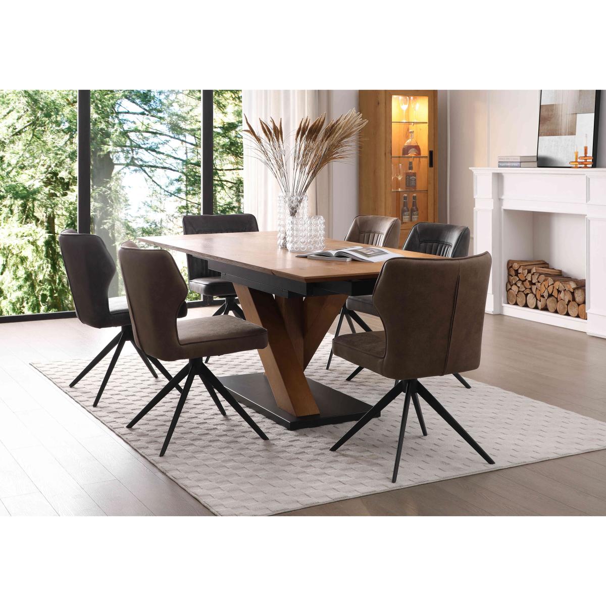 Our great-value Aydin small extending dining table showcases an appealing blend of modern and urban style with an authentic oak veneer top and statement base. Handcrafted. Why you'll love it A stylish fusion of modern, urban and industrial furniture trends. Wonderful craftsmanship at a fantastic-value price. Built to last, this is the perfect extending dining table for families and entertaining. Stunning oak veneer table top with authentic grain, texture and markings. So easy to extend – 2 extra leaves simply pull out from the table ends. When extended, the extra leaves perfectly match the top’s oak patterning. Statement base with black metal plinth. Seats up to 8. Handcrafted. A Furniture Village exclusive. This extending dining table is part of our Aydin range. What you need to know This small extending dining table seats 6 and extends to seat 8. Every piece of veneer or solid wood has unique and natural marks, knots and colour variation. Avoid placing in direct sunlight or close to a heat source. We recommend using coasters and placemats at all times. Be sure to browse the full range of Aydin living room and dining room furniture.