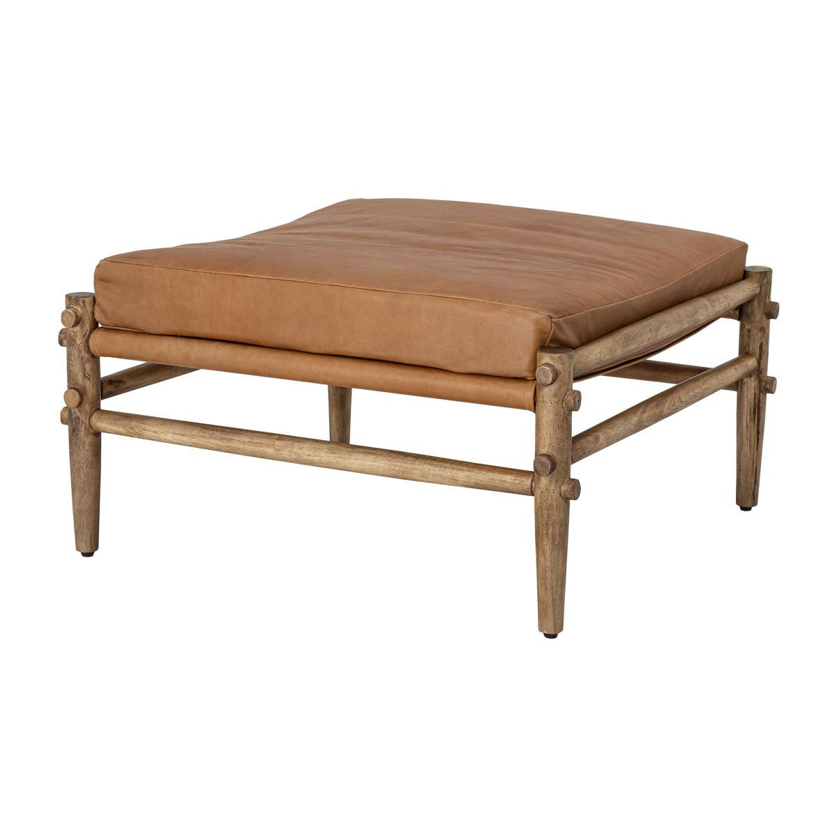A natural and folk style for this elegant padded pouffe, upholstered in a wonderful buffalo-hide with a silky and inviting touch. The Mango tree wooden structure, with its assembly between the different parts deliberately visible, strengthens the authentic and warm aspect of this piece. This pouffe will be ideal to furnish a small leisure area in a lounge, a bedroom or a dressing room. It will allow you to relax in an ambiance where elegance and comfort are in perfect harmony.
