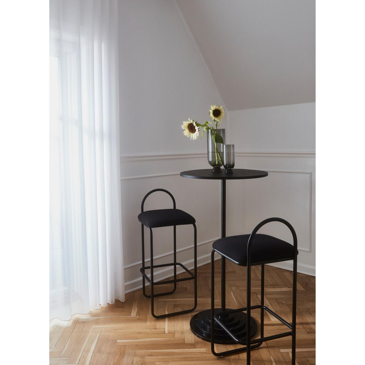 I’m a fan of this anthracite bouclé bar stool for its pared-back silhouette and tactile seat - it brings a hint of softness to a streamlined kitchen island or breakfast bar. The slim, powder-coated frame works equally well in Scandi-inspired spaces, monochrome schemes or alongside raw timber countertops. For styling, mix it with a lighter wood stool or a touch of brushed brass for contrast. Keep the surrounding palette neutral and introduce a cosy wool throw draped over the back to soften the metal lines. Its modest footprint also makes it a practical choice for smaller galley kitchens.