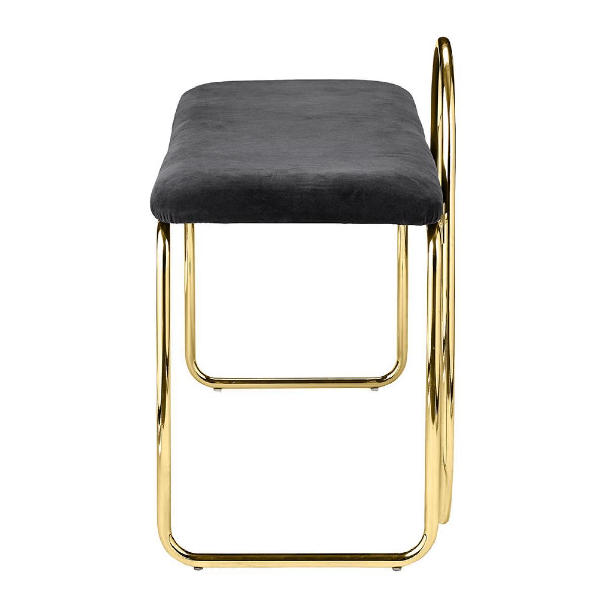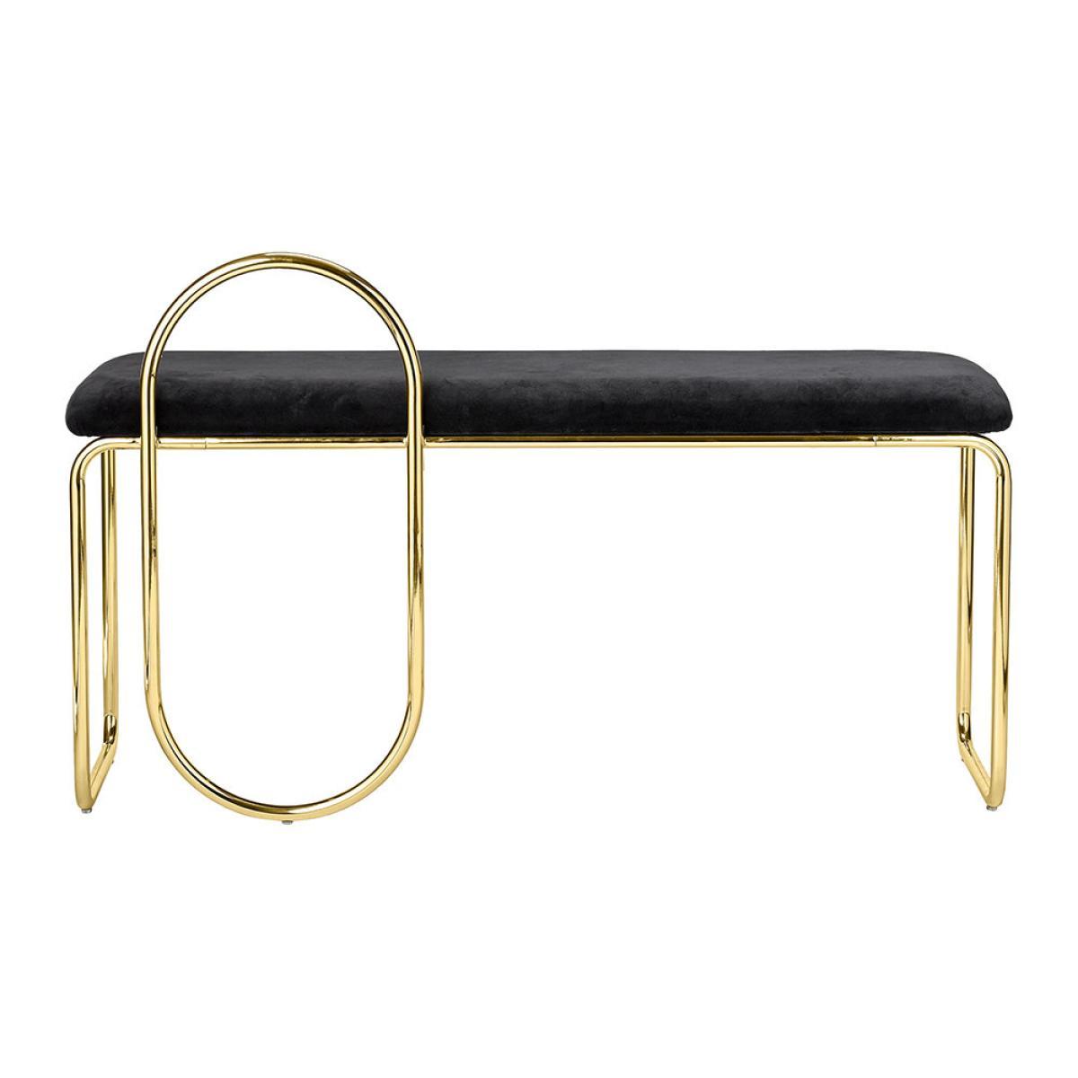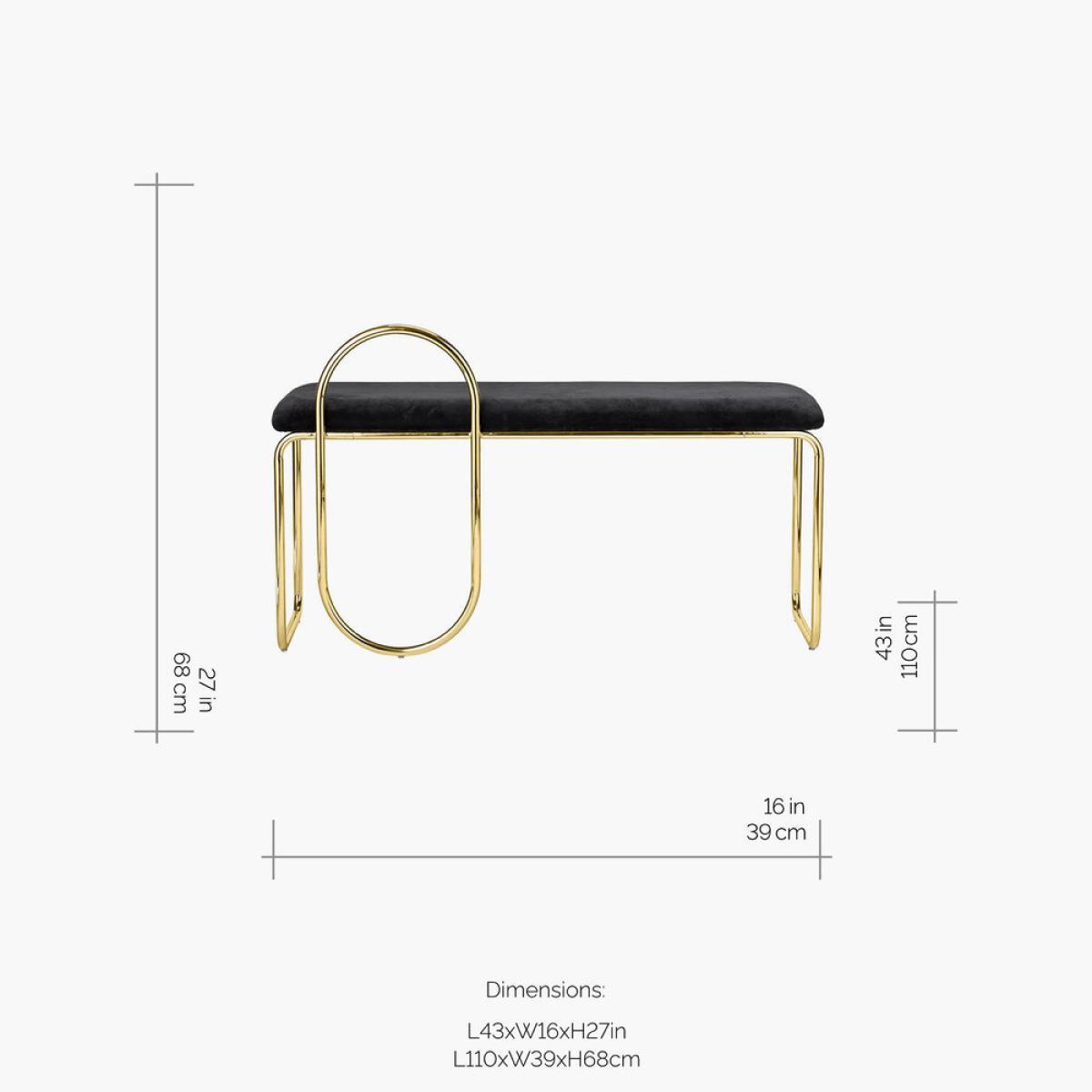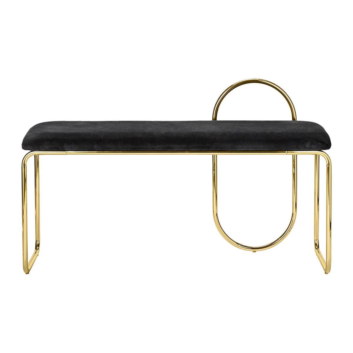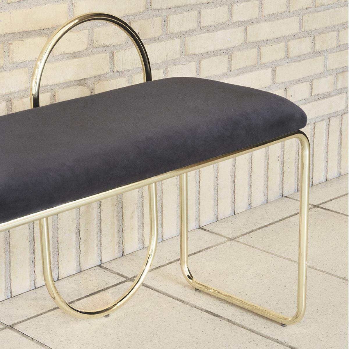 Take a moment to relax on the Angui bench from AYTM. Impeccably stylish, it will update your hallway or bedroom in an instant with its curved lines and thoroughly contemporary design. Choose from Bordeaux red or Forest green cotton velvet upholstery and matching powder coated steel frame. Key features: * Upholstered bench * Material: brass plated steel, cotton velvet upholstery * Dimensions: L110xW39xH68cm * Weight: 15.7kg * Dark grey velvet bench * With brass plated pipe style frame