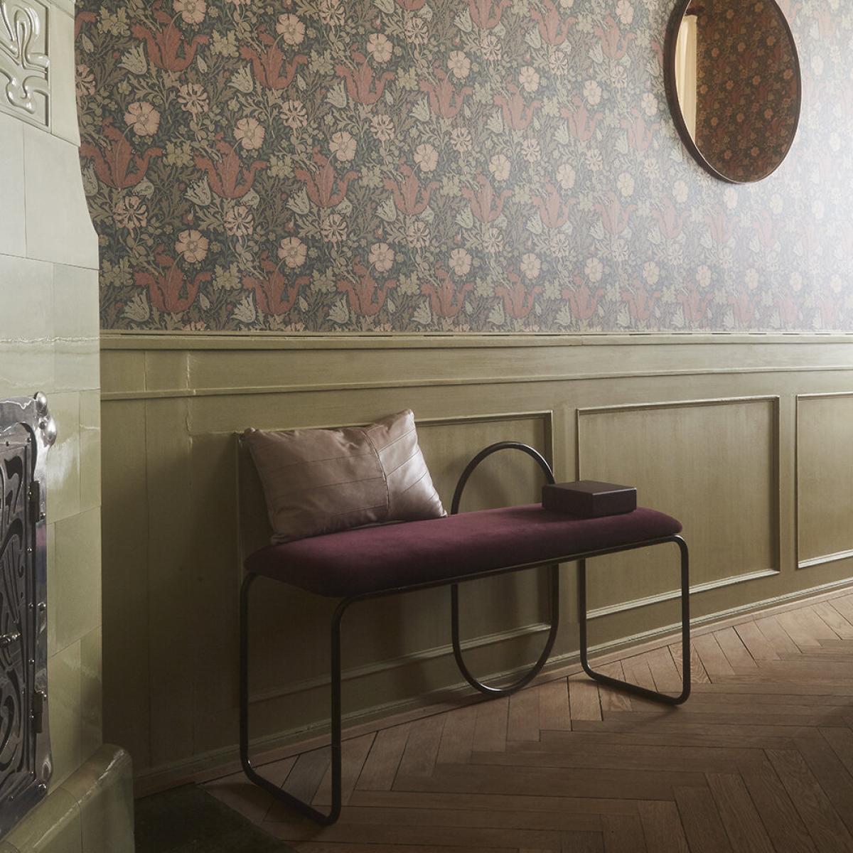 Take a moment to relax on the Angui bench from AYTM. Impeccably stylish, it will update your hallway or bedroom in an instant with its curved lines and thoroughly contemporary design. Choose from Bordeaux red or Forest green cotton velvet upholstery and matching powder coated steel frame.