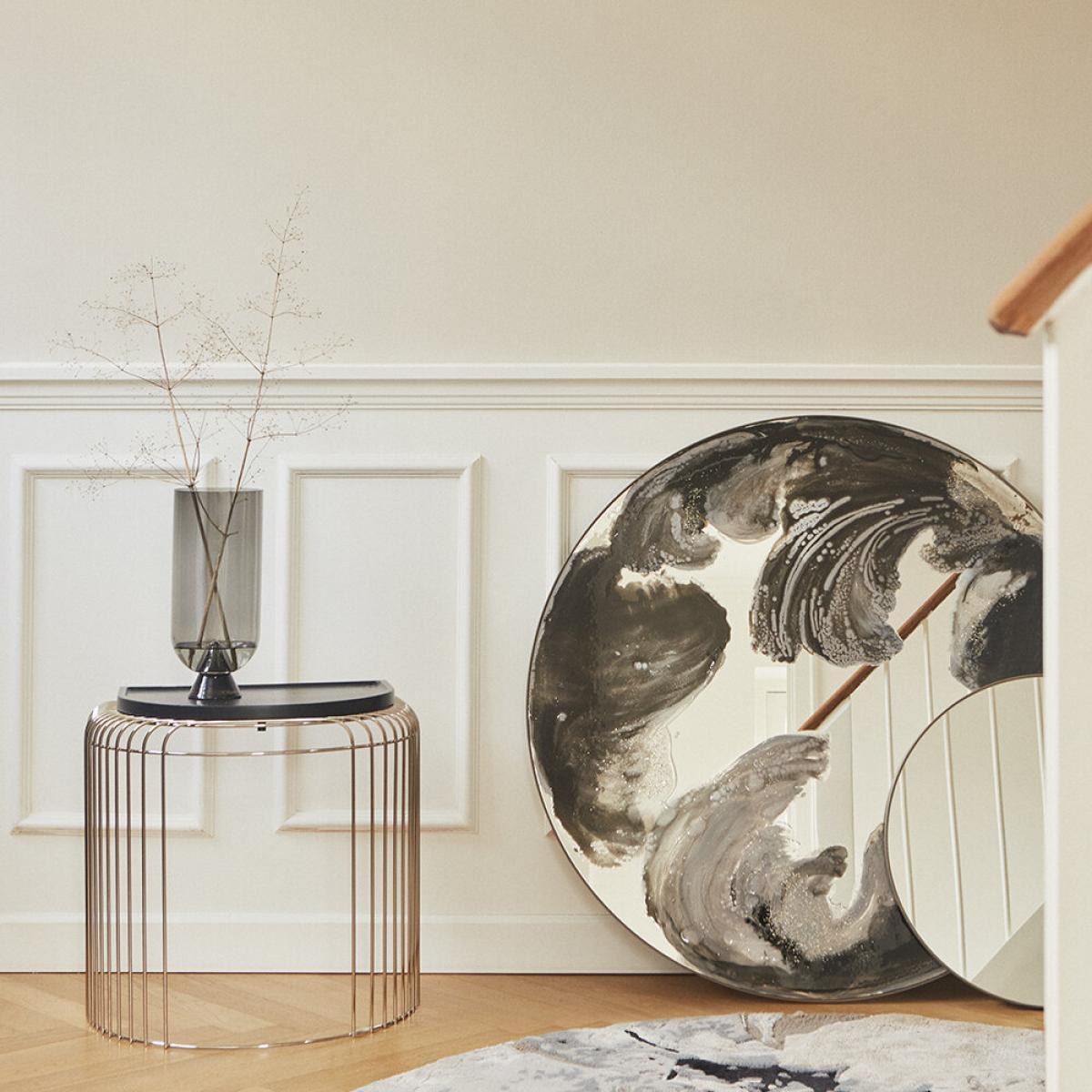 The Curva table in silver is a versatile and contemporary piece that adds a sleek, metallic touch to any interior. I love how its elegant, curved design brings a sense of softness and flow, making it perfect for modern or minimalist spaces. It works well as a side table next to a sofa or bed, and its reflective surface adds a layer of visual interest, especially in rooms with monochrome or neutral palettes. For styling, consider pairing it with textured ceramics or a small lamp to create a balanced vignette. Its size makes it practical for holding essentials or decorative accents, making it a stylish yet functional addition to various room styles.