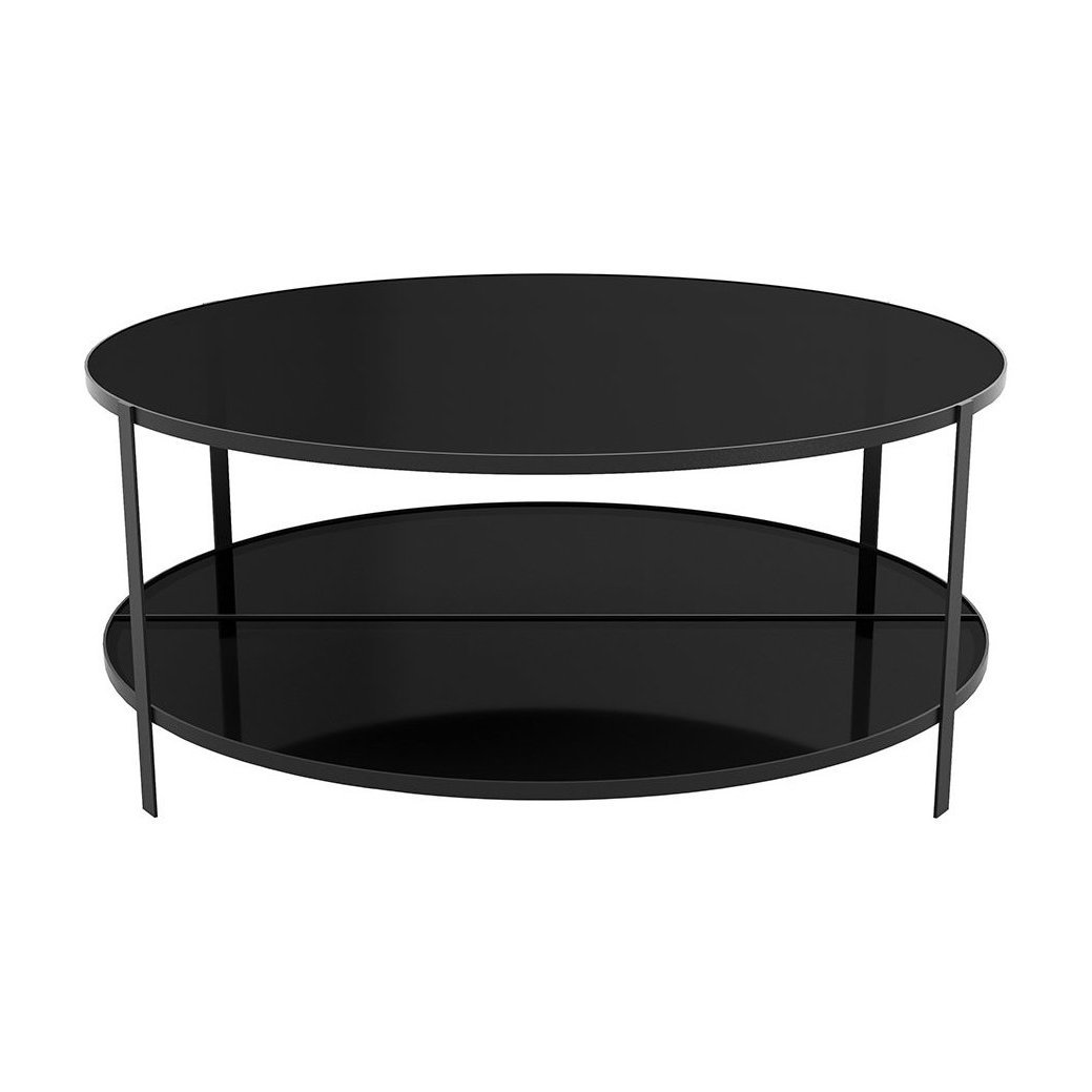 Bring sleek style to your living space with the Fumi coffee table from AYTM. Crafted from black glass with a black steel frame, the circular design bring a modern touch to this classic for the home. The perfect place for magazines and your treasured coffee table books, it features one shelf section below the table top.