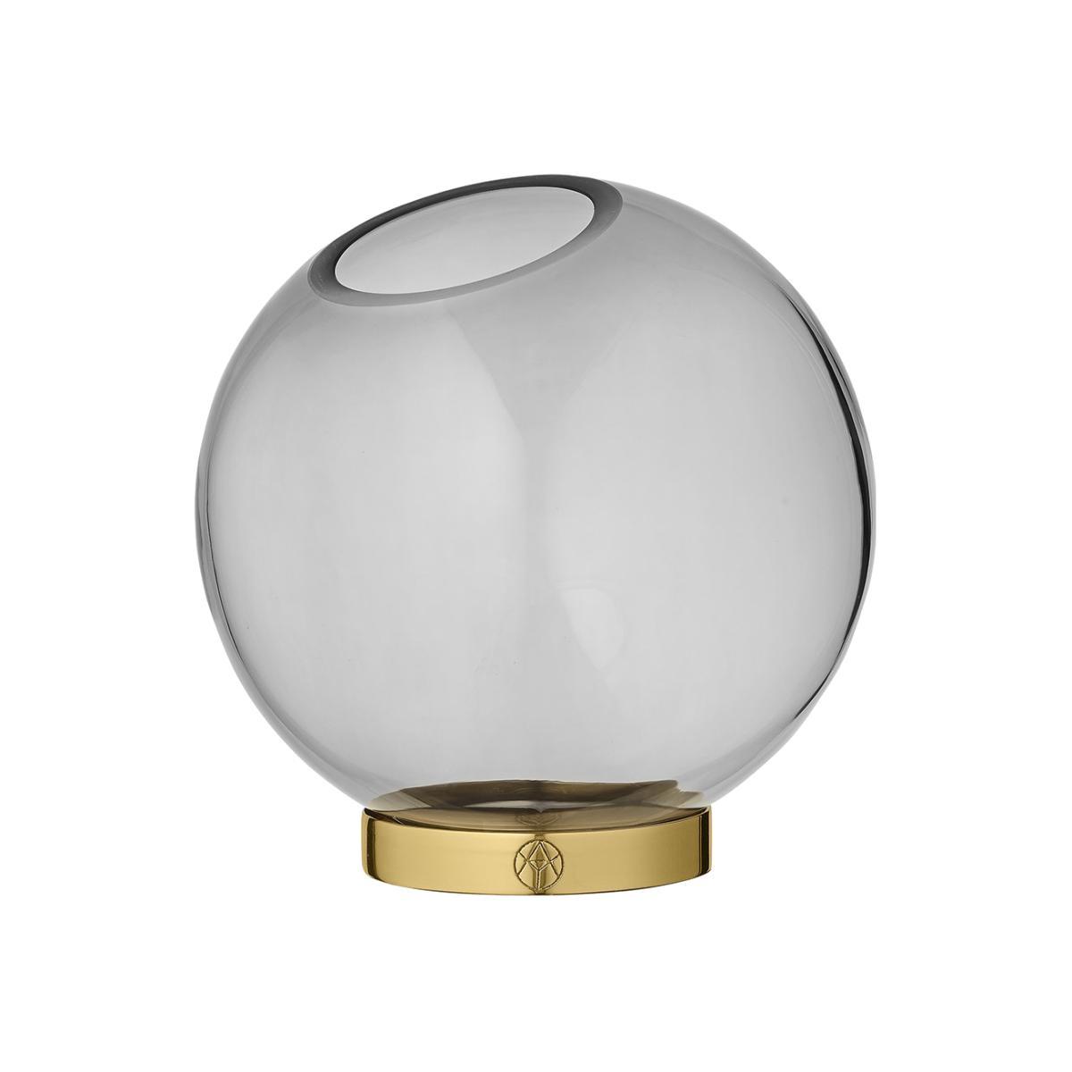 Create a sleek contemporary look in the home with this Globe vase from AYTM. In a sleek globe shape, it is crafted from smoky mouth-blown glass with an off centre opening at the top for artfully displaying your favourite blooms. Fabulously multifunctional, this vase can also be used as a modern plant pot or a kitchen storage pot due to the food safe material. Finished with a brass ring base, it is effortlessly Scandinavian in design with a hint of luxury offered through the shining metallic base.