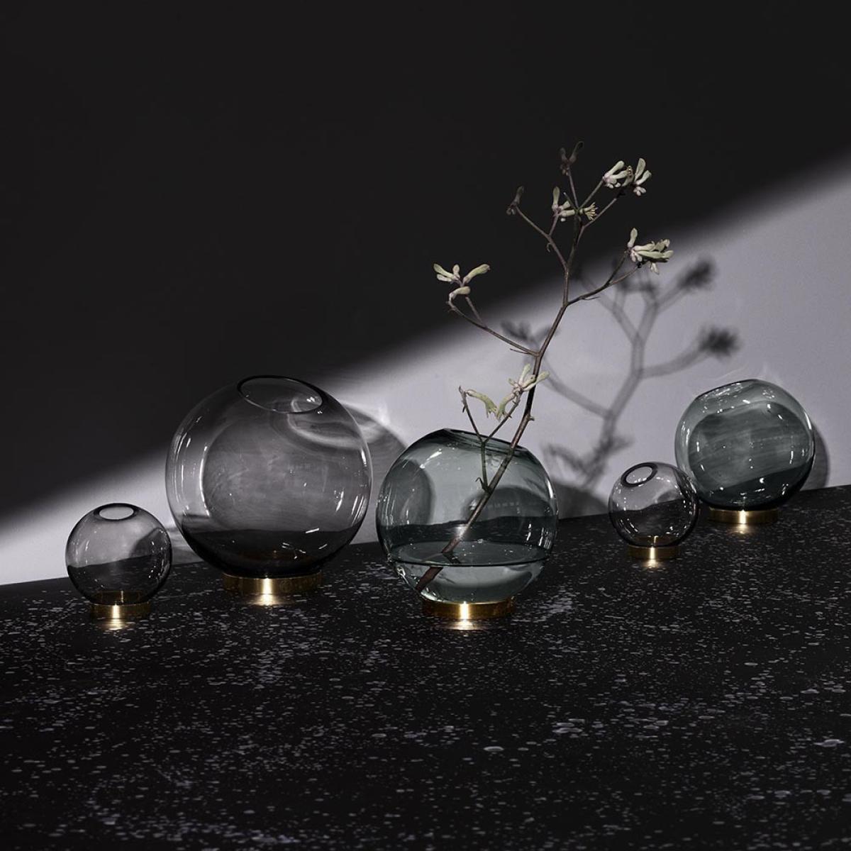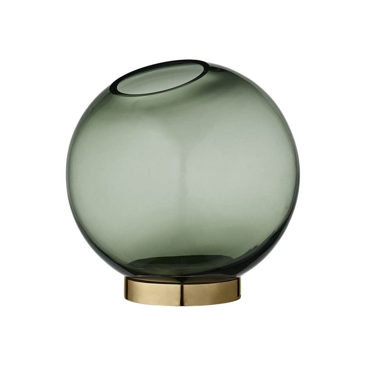 Create a sleek contemporary look in the home with this Globe vase from AYTM. In a sleek globe shape, it is crafted from forest green mouth-blown glass with an off centre opening at the top for artfully displaying your favourite blooms. Fabulously multifunctional, this vase can also be used as a modern plant pot or a kitchen storage pot due to the food safe material. Finished with a brass ring base, it is effortlessly Scandinavian in design with a hint of luxury offered through the shining metallic base.