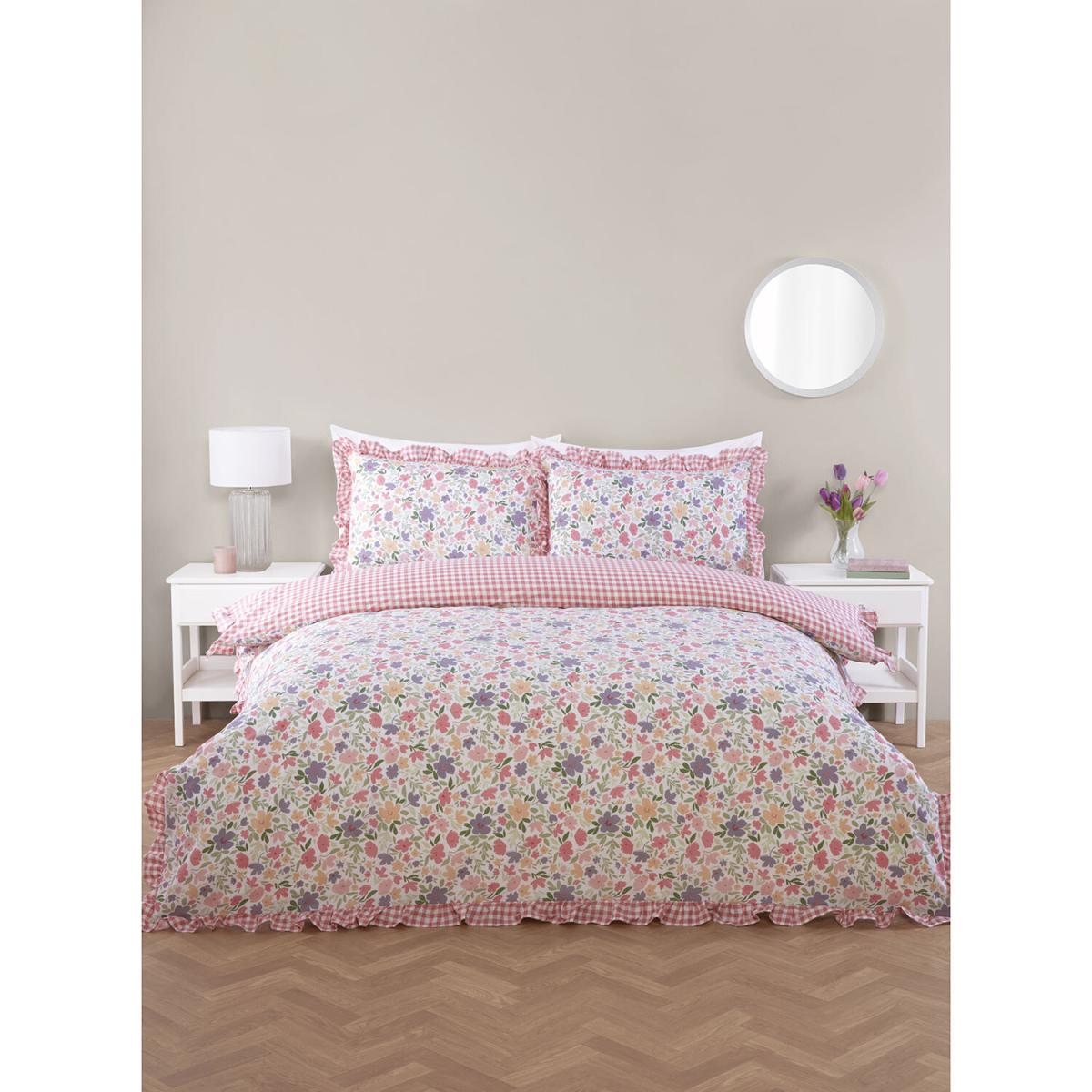 Snuggle up in this Ayva Floral Duvet Set. Elegant and classy, this duvet set features a lovely floral design with ruffled edges for added style. Made using polycotton, it is super comfortable and ideal for everyday use in your bedrooms. Perfect to keep you warm and cosy, this duvet will effortlessly complement a variety of interiors and uplift any decor.