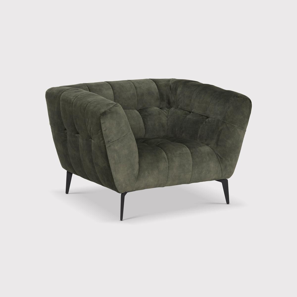 I love the Azalea armchair for its plush, inviting appearance and versatile colour. Its deep green fabric adds a sophisticated yet approachable touch, making it suitable for both contemporary and traditional interiors. It works particularly well in cosy living rooms, reading nooks, or eclectic spaces where comfort is key. For styling, consider pairing it with neutral-toned throws or cushions to highlight its rich hue, or mix it with wooden or metal accents for a modern twist. Its compact size makes it ideal for smaller rooms or as an accent chair in larger schemes, offering both style and functionality with a sleek profile.