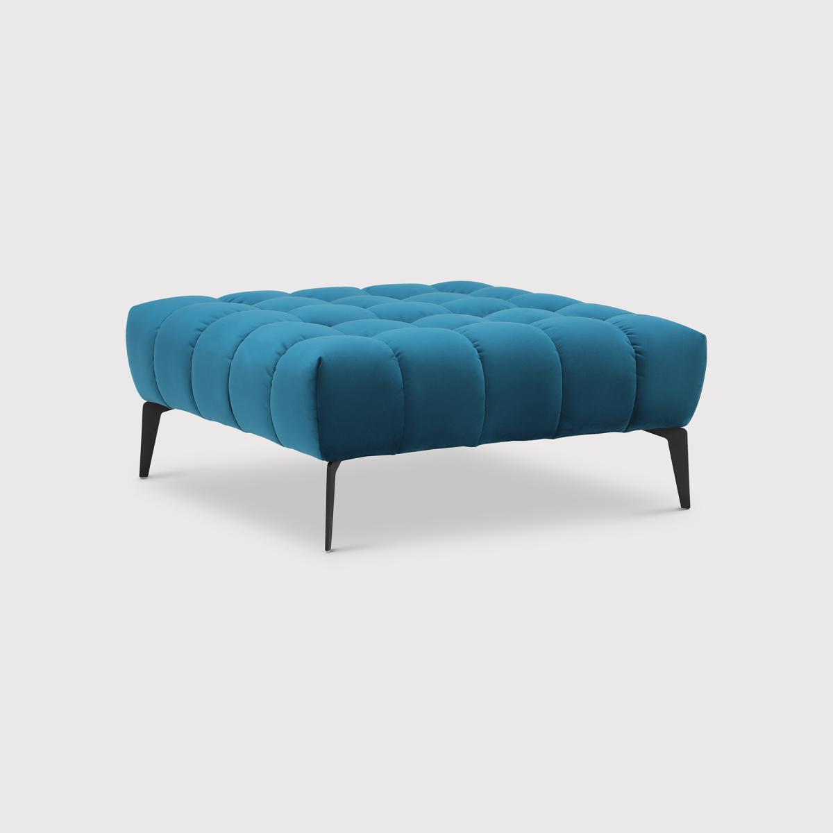 The perfect accompaniment to the Azalea Corner Sofa, the Azalea Footstool boasts a sumptuous plump design, with foam cushioning and luxuriously vintage button-through upholstery. Pairing a contemporary, clean lined base with a curvaceous cushion, the Azalea captures modern elegance through its tapered iron feet and plush velvet that feels as good as it looks. The ideal place to rest your feet after a long day, the Azalea is suitable for adding a touch of luxe to any room. Choose between rich teal, deep navy, sophisticated black or versatile grey.