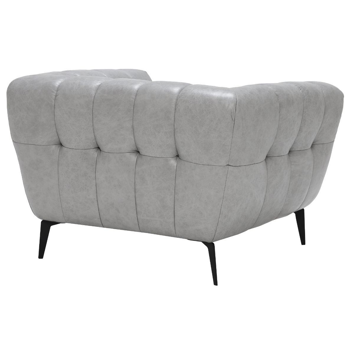 Boasting curvaceous cushioning and a stylish button-through design in sleek leather, the Azalea Chair has a contemporary look through tapered legs in a sleek black finish. A perfect feature piece to the modern living area, the Azalea is carefully filled with foam seat cushioning and elastic webbing suspension for optimum comfort and support.