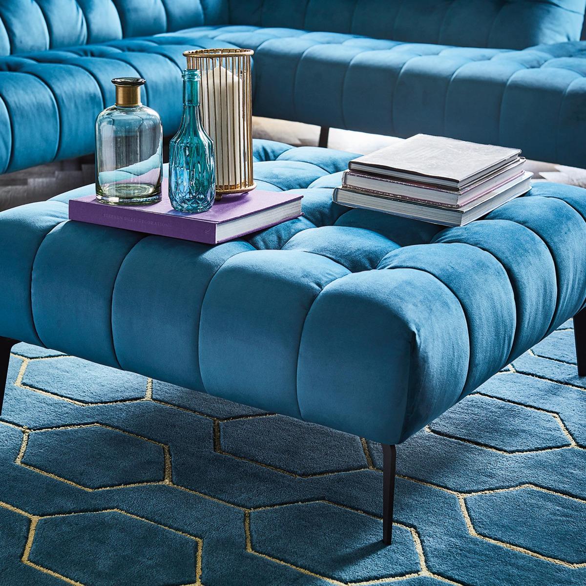 I love this little footstool for its bold, contemporary design and comfort. Its tufted, vibrant blue fabric makes it a versatile statement piece that can add colour and texture to both modern and eclectic interiors. It works well as a footrest in living rooms or as extra seating in a guest room, especially when paired with neutral furniture to make it stand out. For styling tips, consider using it alongside a linen sofa or as an accent piece in a space with wooden or metallic accents. Its compact size is practical for small spaces or multi-functional rooms, and it can easily be moved around to serve different purposes. Overall, it’s a stylish and functional addition that brings both comfort and character to any room.