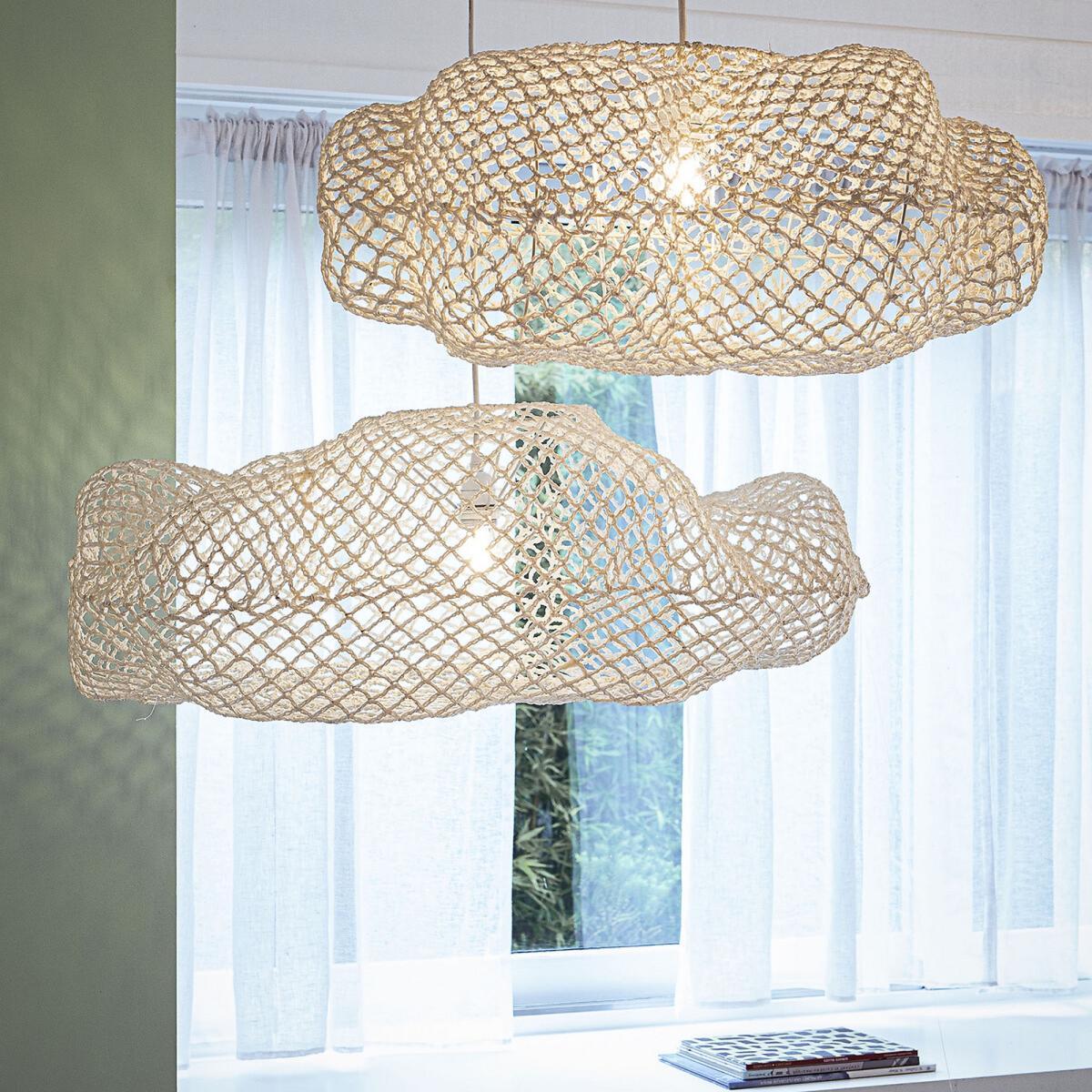 Azeria lightshade. Sweet and playful thanks to its cloud shape, this ceiling light is crafted from woven paper strands for a textured finish.