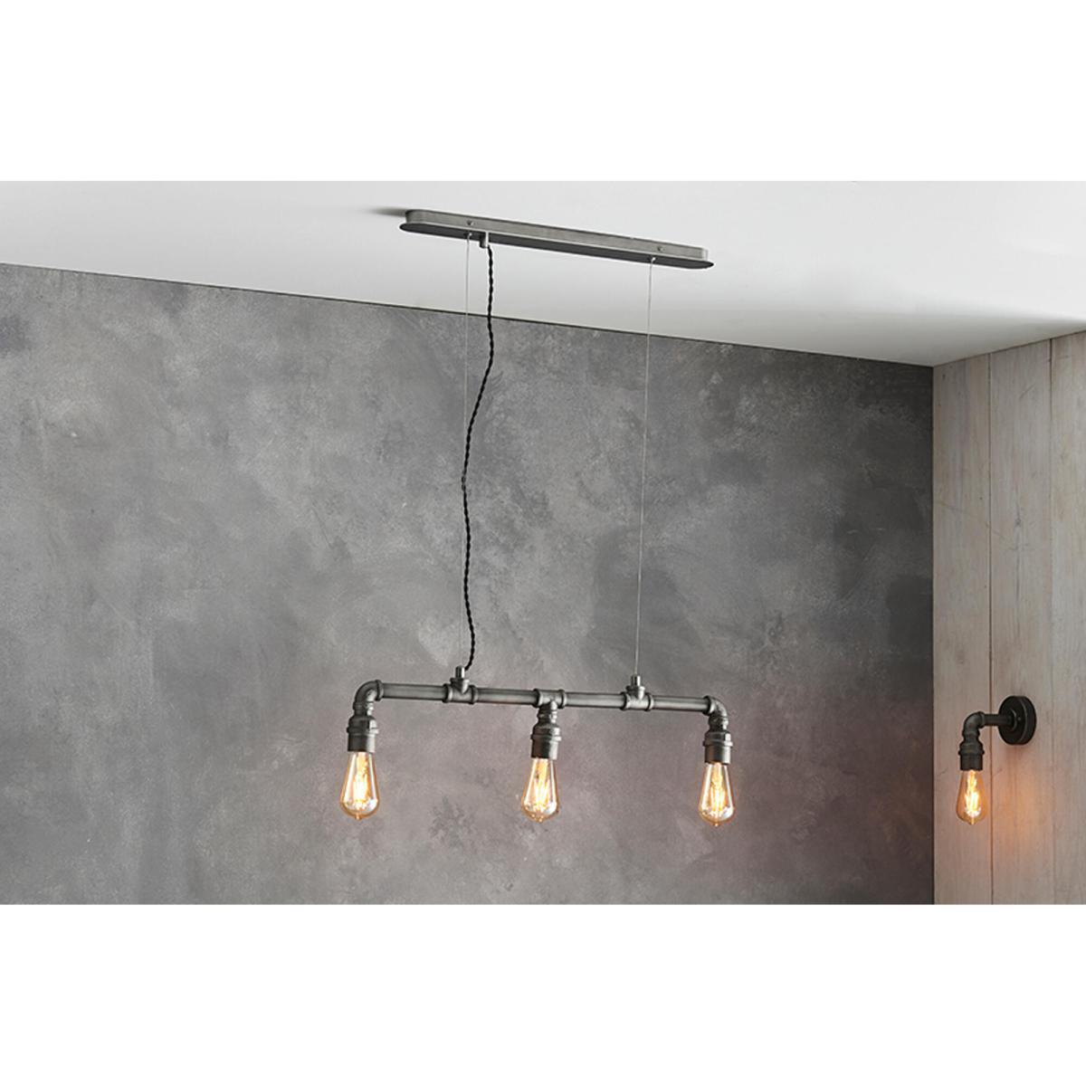 Give your living room a decadent look and feel with the Azir Aged Pewter Wall Light. This striking fitting sets the scene thanks to its pipe crossbar aesthetic, deep colour and urban design. The Azir Lighting Range is a match made in heaven for creative homes, where it can shine as the natural focal point it is.