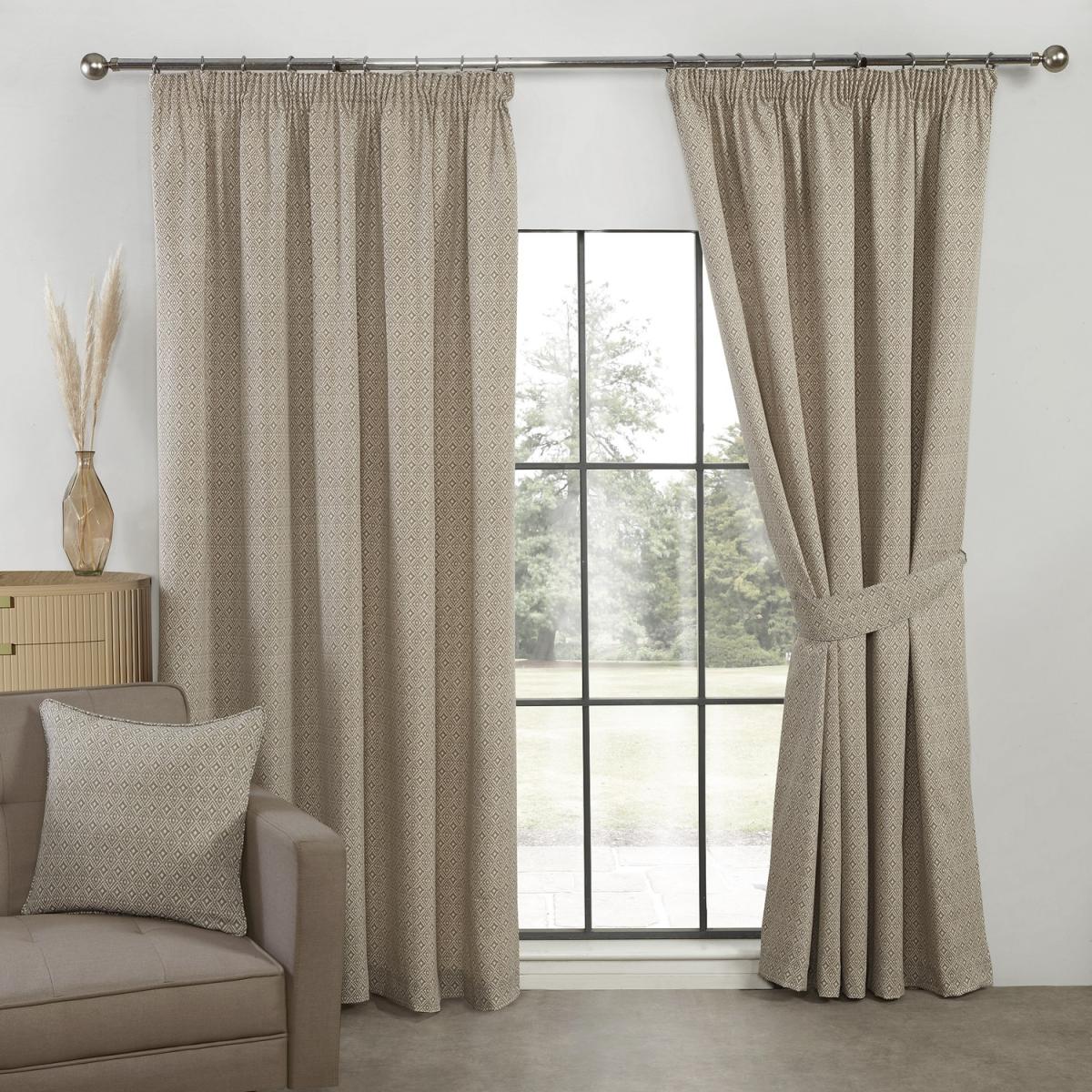 Aztec Linen Pencil Pleat Curtains - Linen / 54in / 90in