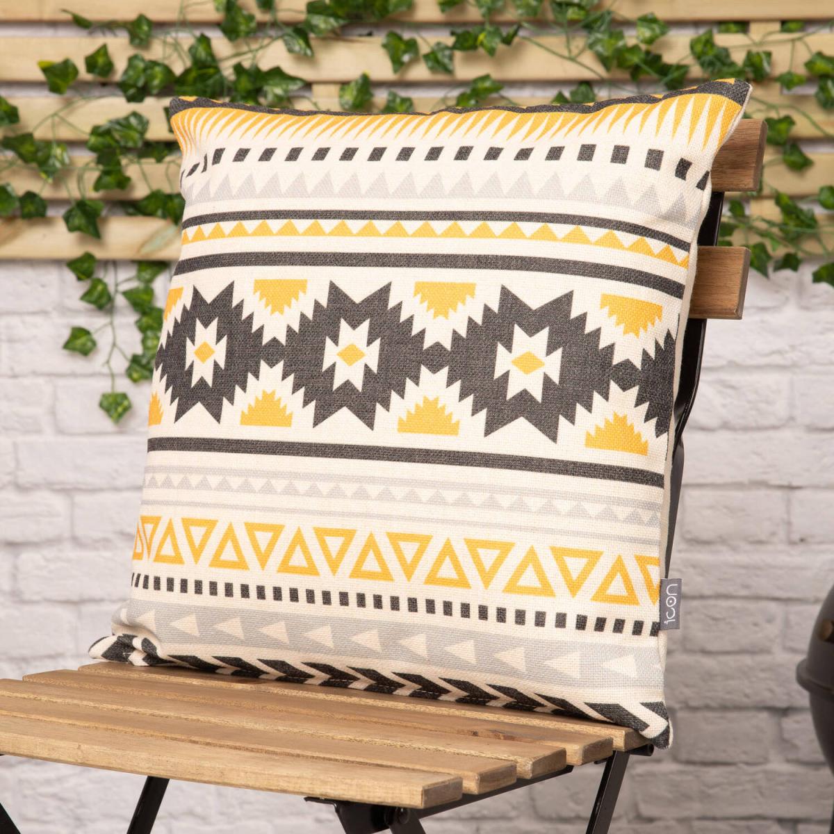 Bring a relaxed, global-inspired aesthetic to your outdoor seating area with these richly textured cushions. Both comfortable and decorative, the unique patterns are ideal for sprucing up alfresco spaces. Made with 100 water-resistant fabric, these cushions are designed to withstand the conditions of different environments. Easy-care fabrics make them very durable, robust and long-lasting. These cushions are ideal for those who are looking for that statement piece to give their space an instant style update. The perfect accessory to spruce up a window seat, soften hard patio furniture, or transform your terrace into cosy open-air living room with a tropical vibe.